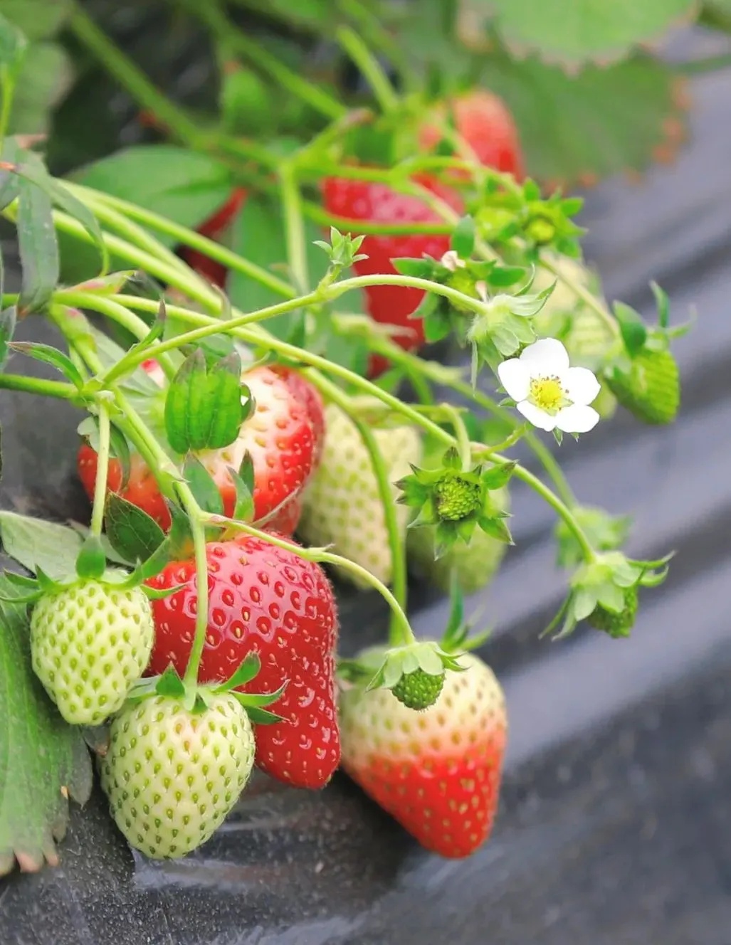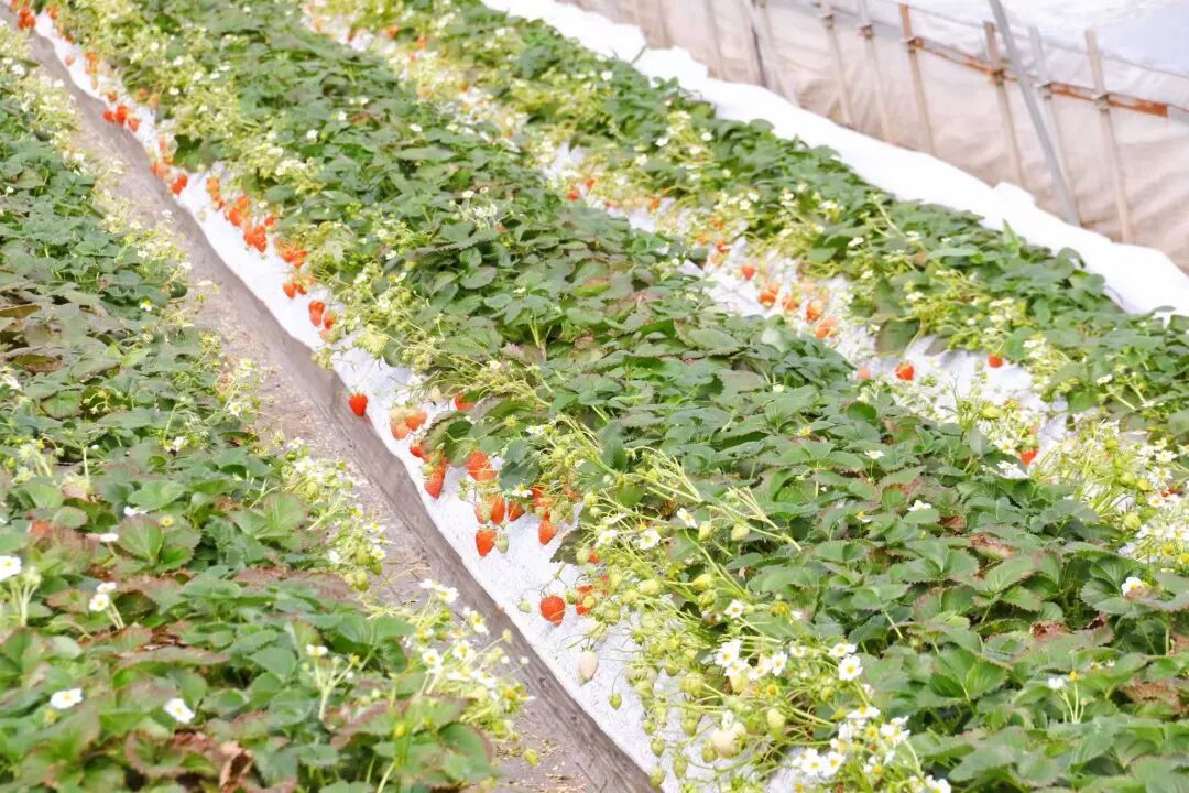 走进灯塔村的草莓大棚,各色草莓都已经进入成熟期。暖意融融中草莓甜香扑鼻,一垄垄草莓植株整齐排列,满目翠绿中白色的花朵摇曳生姿,红彤彤、粉嘟嘟、白生生的草莓果实点缀其间,宛如一颗颗镶嵌在绿叶中的宝石,令人赏心悦目。