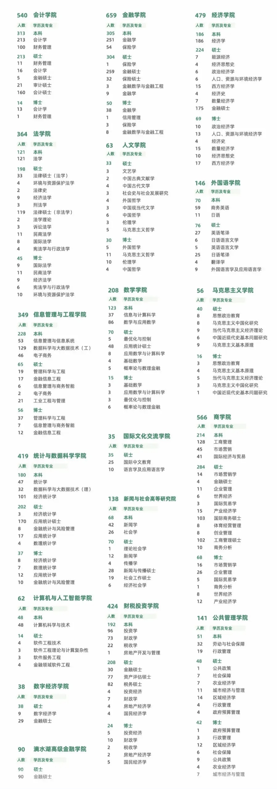 以下为上海财经大学部分生源信息