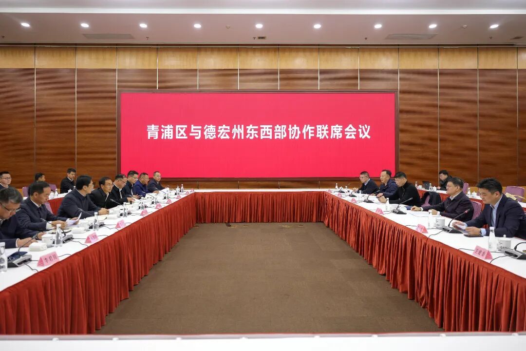 王平代表区委、区政府对德宏州代表团一行的到来表示欢迎。他指出,青浦与德宏自结对协作以来,两地党委、政府高度重视,携手并进,在产业协作、人才交流、民生改善、乡村建设等多个领域取得了丰硕成果。面向“十五五”,青浦立足服务落实国家战略和上海“五个中心”建设的大局,提出了建设长三角创新枢纽的总体目标;德宏明确建设“美丽新德宏”的总目标和建设“面向印度洋国际陆海大通道门户枢纽”,两地合作空间广阔。希望双方围绕产业协作和园区共建,立足两地深厚合作渊源,坚持优势互补、双向赋能、互惠共赢,全力以赴抓好各项任务的落实,为服务国家发展大局、促进区域协调发展、推动共同富裕作出新的更大贡献。 王云霏对青浦区多年来给予德宏州的帮助和支持表示感谢。他指出,青浦在项目、人才、教育、卫生、农业等多方面给予德宏大力支持,两地协作结下深厚情谊,为德宏经济社会发展注入了强劲动力。希望青浦在产业园区共建方面给予更多支持,围绕纺织服装、消费电子、中药产业等重点领域,助力园区产业集聚,引荐青浦现代物流、电子信息、装备制造等企业与园区对接合作,推动园区承接优质项目,优化德宏产业结构。德宏将进一步深化两地合作,依托产业协作园区的政策与资源优势,挖掘更多合作切入点,携手推动沪滇合作走深走实,实现两地共赢发展。 会上,刘毅鹏作德宏州东西部协作工作情况介绍,张彦作青浦区东西部协作工作情况介绍。会前,德宏州代表团实地考察中通快递股份有限公司、西郊国际农产品交易中心。