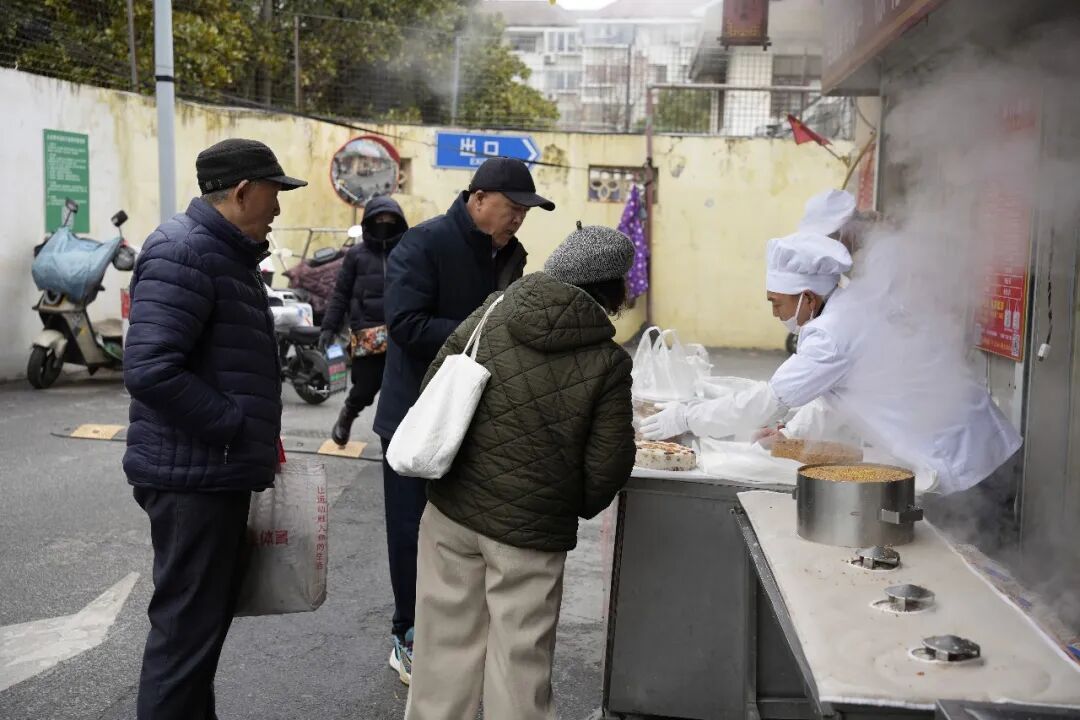“老板,再来个3块猪油糕。”“好嘞。”2月10日中午,位于温宿路上的老解重阳糕店外排起长队。徐行蒸糕区级代表性传承人解荣光和点心师傅们忙得热火朝天,筛粉、和上大把核桃、红枣、松子,最后撒上桂花上炉蒸,不一会儿,一块热气腾腾、散发着馥郁甜香的蒸糕就出炉了。