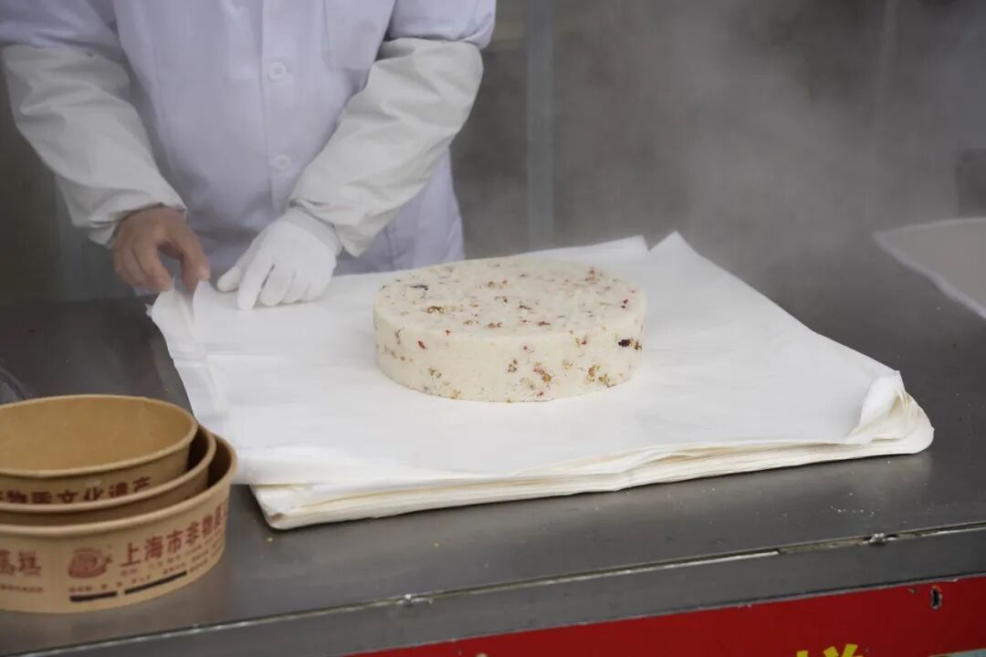 “小时候每到过年前,奶奶都会亲手给我做。”对于顾客孙女士而言,购买手工蒸糕近乎一种仪式。“好吃的糕到处有,但能亲眼看着老师傅从揉粉到出笼的,太少了。”她特别享受蒸糕被利落扣在案板上的那一刻,“那个瞬间就像一个开关被触发,仿佛回到小时候,家里长辈围在一起蒸糕的场景。”