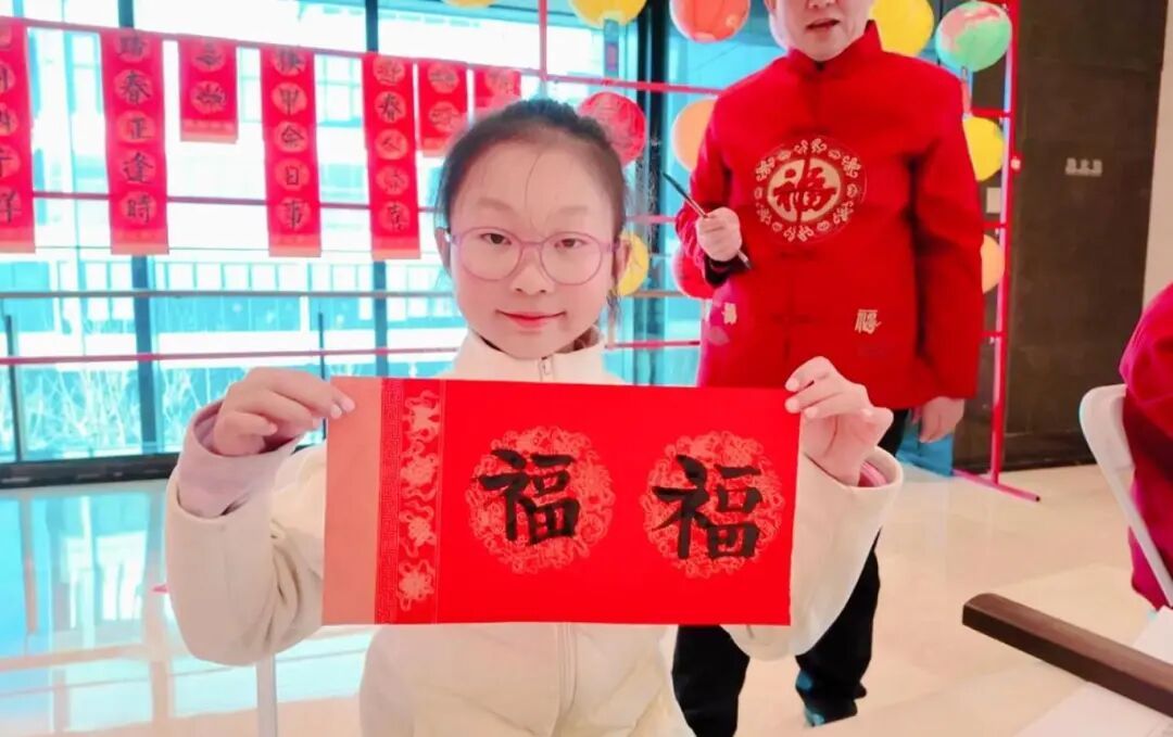 墨香贺岁的“福”字对联区同样人气高涨,现场挥毫泼墨,一个个喜庆的 “福” 字、一副副吉祥的对联跃然纸上,拿到亲手题写的“福”字和对联,心头满是欢喜与暖意。