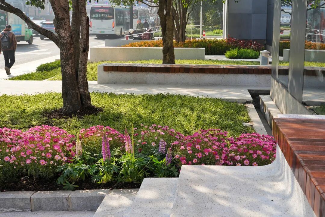 改造前,铺装陈旧、绿化封闭、设施零散,界面语言缺乏统一;公交站旁无一处可坐,候车者或倚阶而立,或张望徘徊。巷弄虽近,却因缺乏驻足节点而鲜少人停留。正是这些细碎的“不便”,催生了此次微更新的起点:激活空间,让市民有个地方“歇歇脚”。