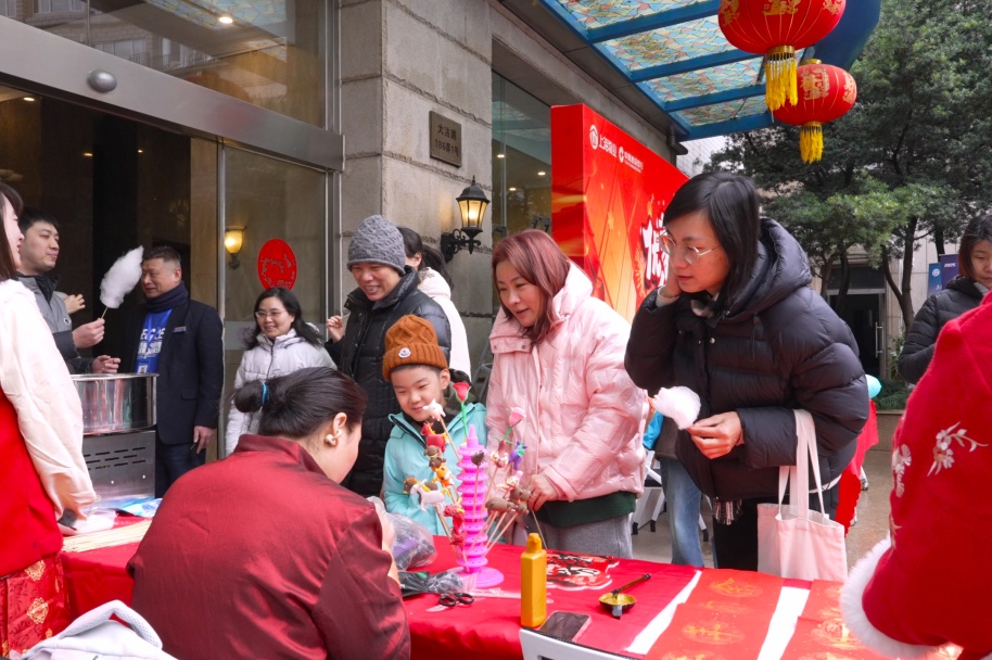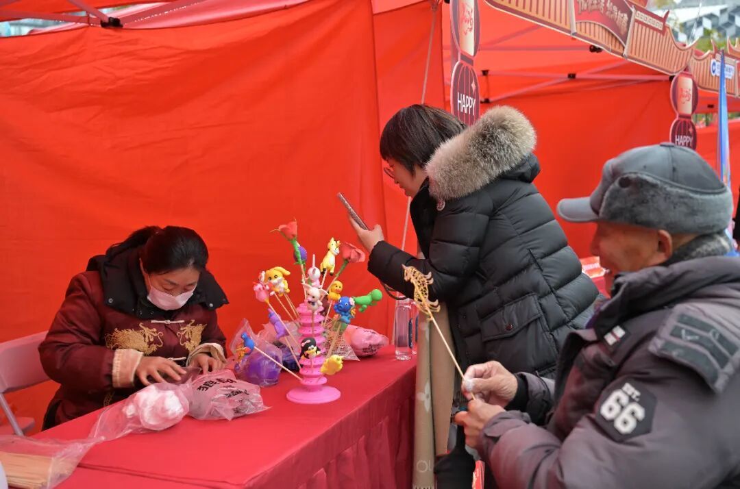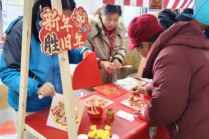 服务内容构建了丰富矩阵,全方位满足居民需求。现场不仅提供物业政策咨询、线上平台推广及免费理发等便民服务,还联合城管执法、公积金管理中心、邮政、金融机构等多个部门,提供政策解答、普法宣传、反诈指导等一站式服务。更富年味的是,写福字、糖画、编中国结、舞龙舞狮及投壶等传统互动,营造出欢乐祥和的新春氛围,拉近了邻里距离。