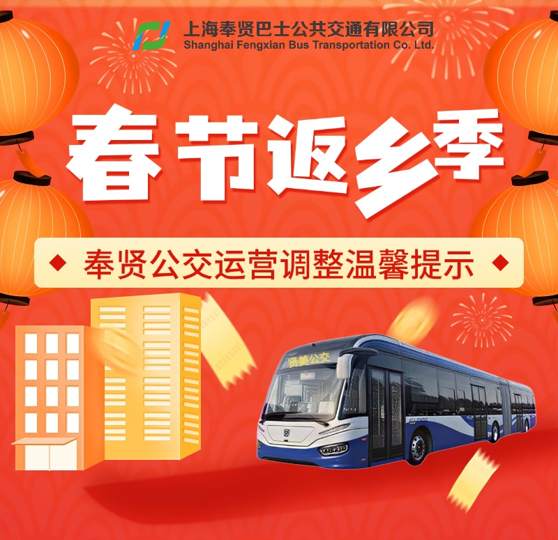 2026年春节即将来临,奉贤公交将对部分线路的班次间隔进行适当调整。本次调整不改变各线路原有的首末班车时间。为避免耽误您的行程,请您提前规划出行。如需了解具体调整信息,可通过以下方式进行咨询: