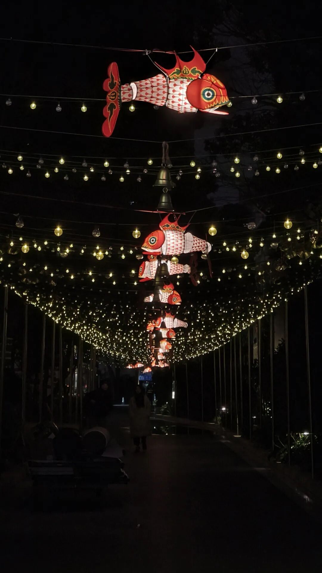 绯红鱼灯挂满枝头,夜幕降临,鱼灯亮起,像是年画里的锦鲤“游”了出来;