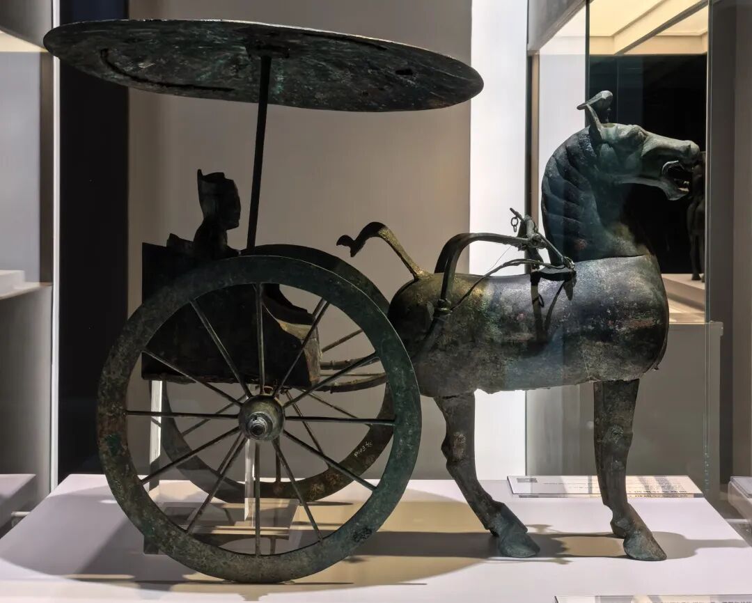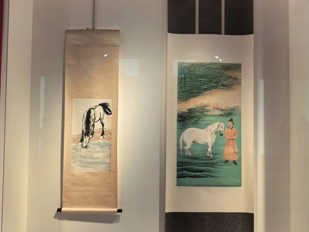 观众将在其中邂逅与“马踏飞燕”同出于武威雷台汉墓的青铜车马,感受汉代车骑仪仗的赫赫威仪;欣赏凌空踏云的玉仙人奔马,品味汉代玉雕中的灵动神韵;近观出自吐谷浑墓葬的唐代骑马击鼓俑,领略丝路交往的生动瞬间;在徐悲鸿《饮马图》与张大千《临曹霸玉花骢图》中,体会墨韵流淌中的马魂风骨。