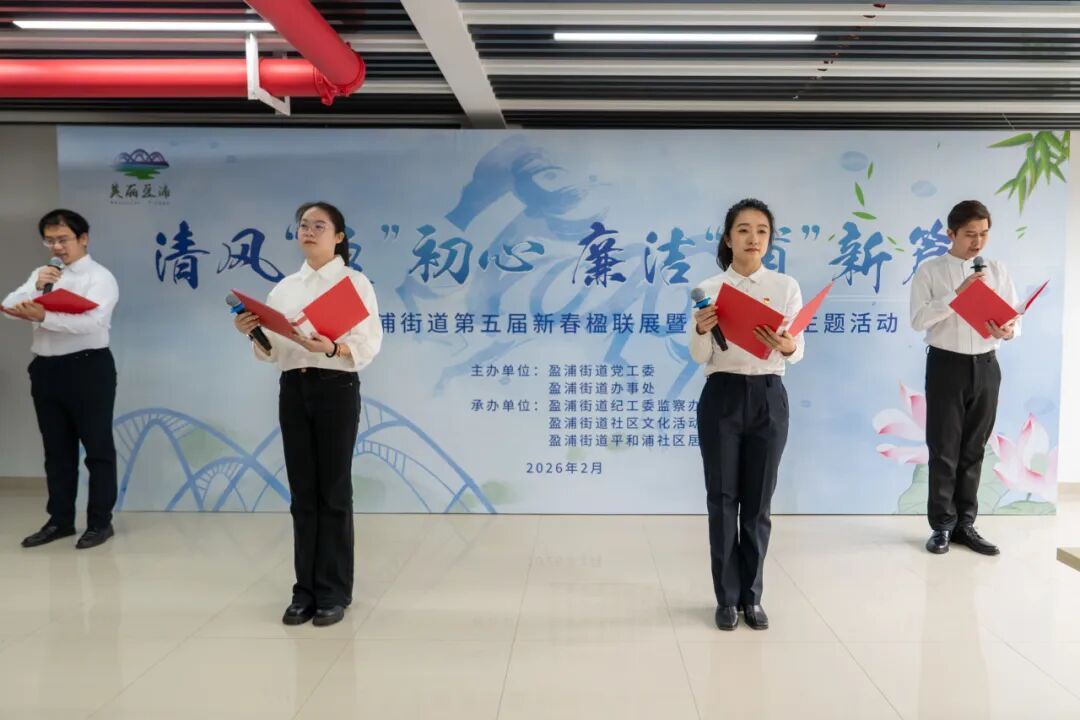 近日,清风“盈”初心 廉洁“浦”新篇——2026年盈浦街道第五届新春楹联展暨廉洁文化主题活动在平和浦社区举办。本次活动以新春楹联文化为载体,以廉洁教育为核心,同步举行青浦区盈浦街道廉洁教育基地揭牌仪式,进一步推动廉洁文化扎根基层、浸润人心。