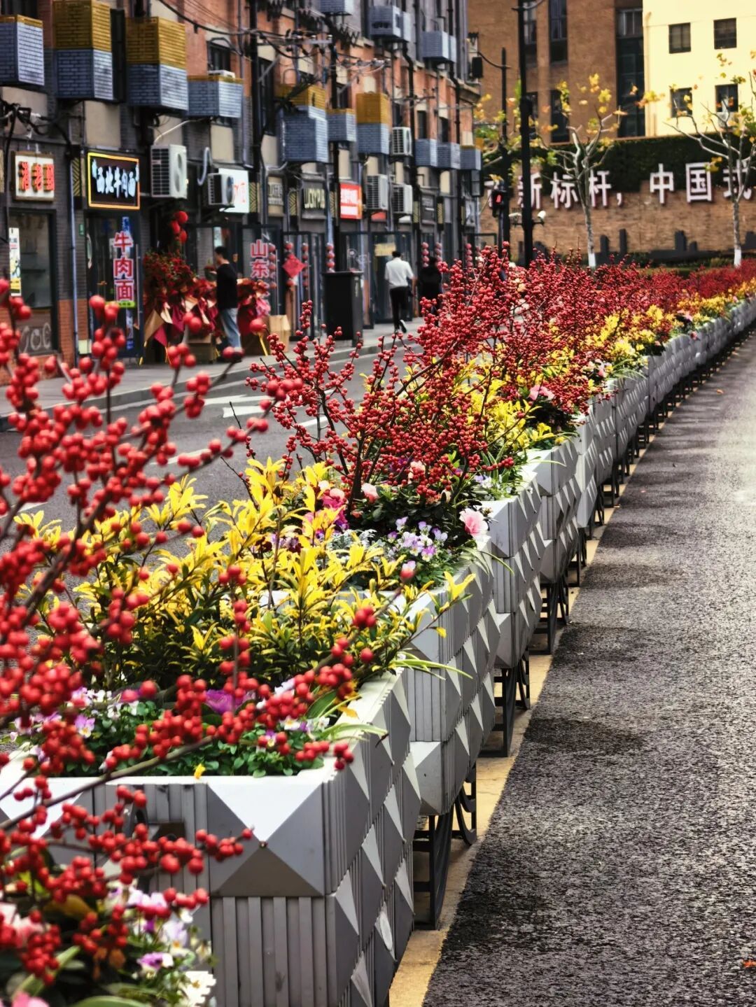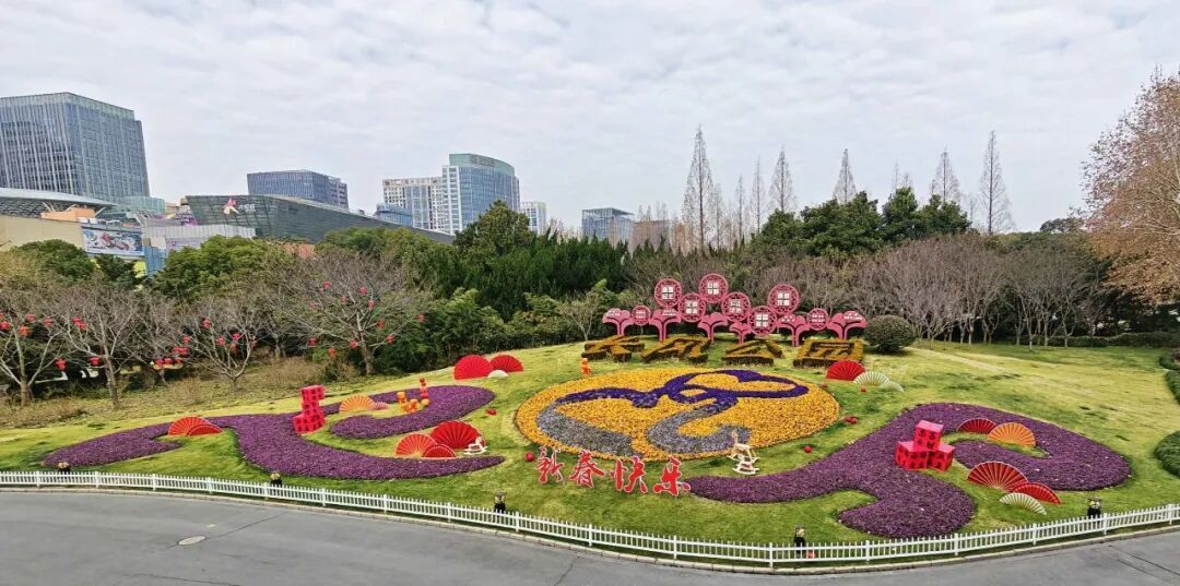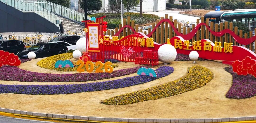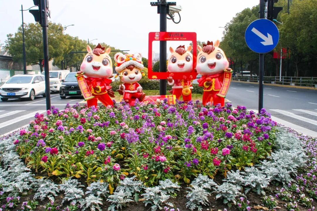 形式丰富多元,运用花坛花境、主题景点、组合容器、灯杆花球等多种形式,增强视觉层次与互动体验。