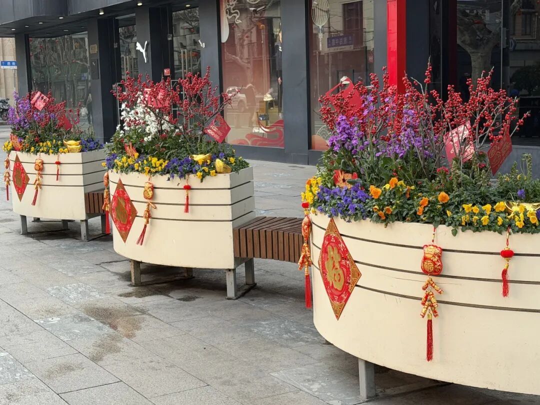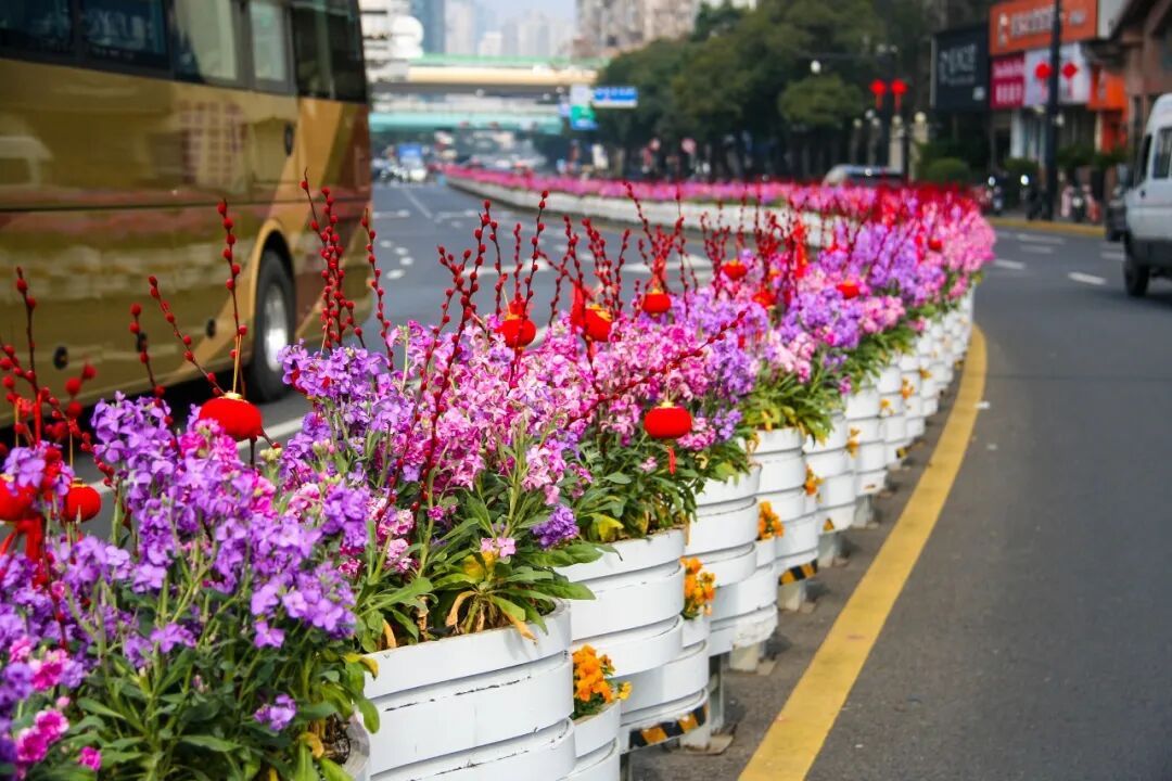 本市绿化部门聚焦人民广场、外滩、陆家嘴3个核心区域,静安寺等8个市级重点区域以及淮海路等13条市级重点道路开展了花卉景观布置。