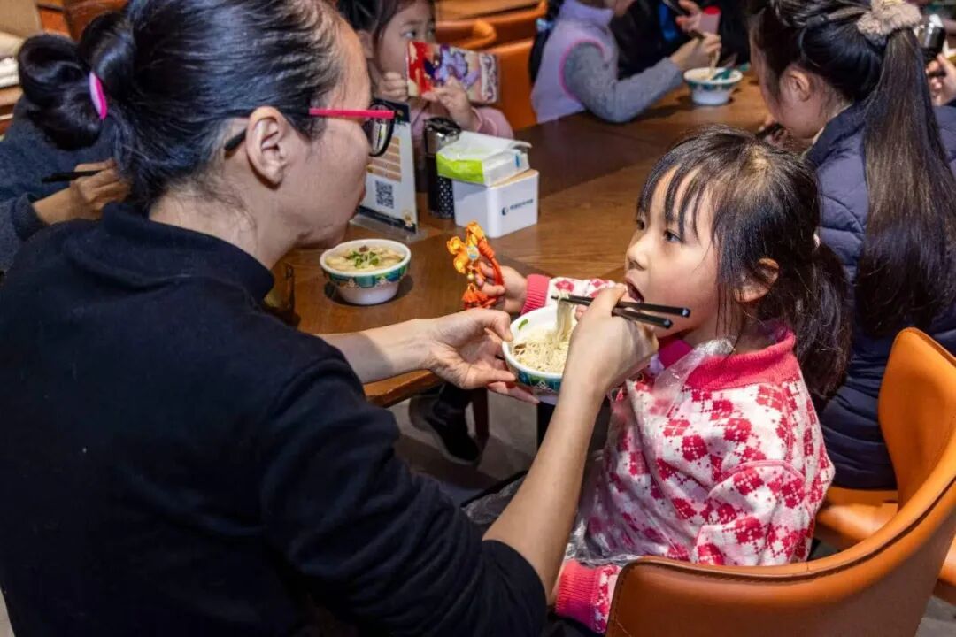 体验过后,是暖胃更暖心的品鉴环节。一碗碗热气腾腾的牛肉面被端上桌,汤清、萝卜白、辣油红、香菜绿、面条黄,色彩明丽。孩子们仔细辨认着自己碗里的面型,品尝着不同口感背后的匠心,活动在一片欢声笑语与浓郁的面香中步入尾声。