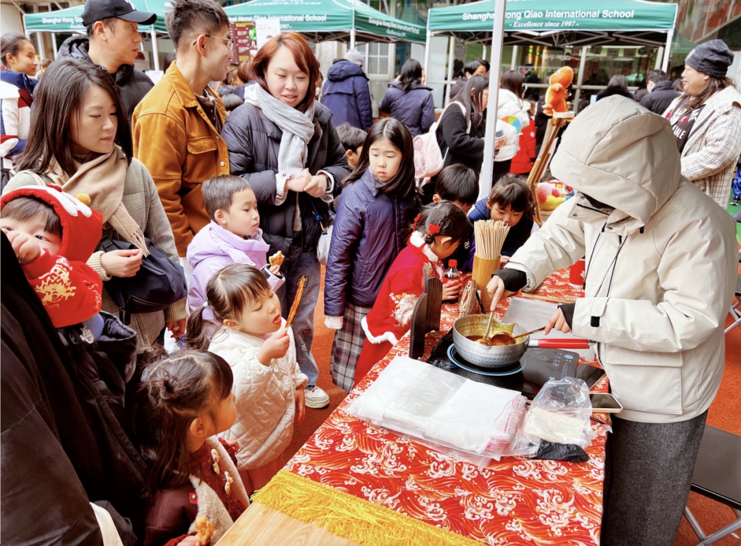 走进上海虹桥国际外籍人员子女学校,校园内张灯结彩,红彤彤的灯笼与“福”字将场地装点得年味十足,“非遗年味” 市集里人头攒动,中外孩子们的欢声笑语此起彼伏。