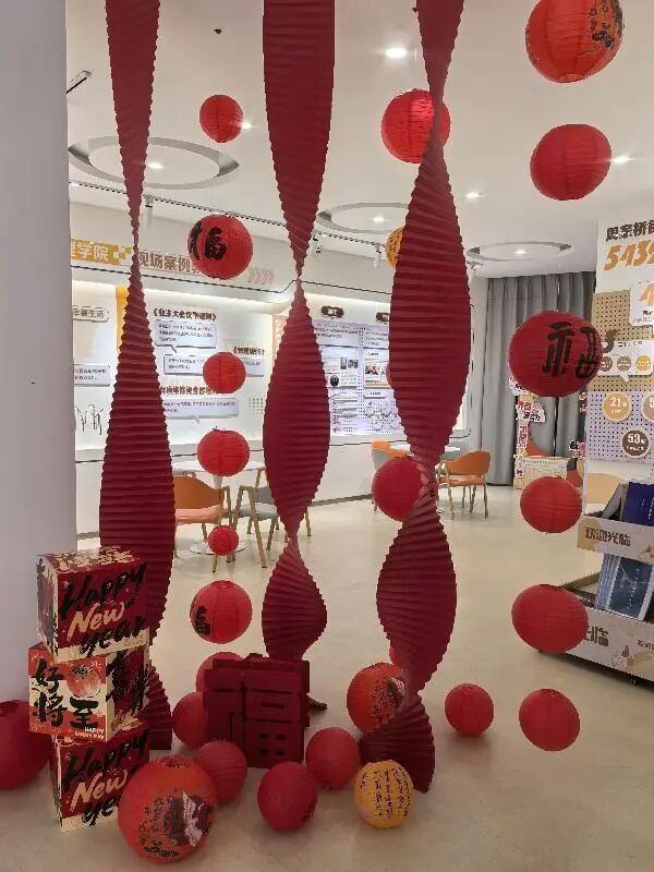 江华机电大楼的读书角也换上“新装”,喜庆灯笼映着吉祥窗花,火红年宵花筒点缀案头,让书香与年味相融,营造出温馨雅致又不失欢乐的节日氛围,静待居民共赴书香之约、共迎新春佳节。