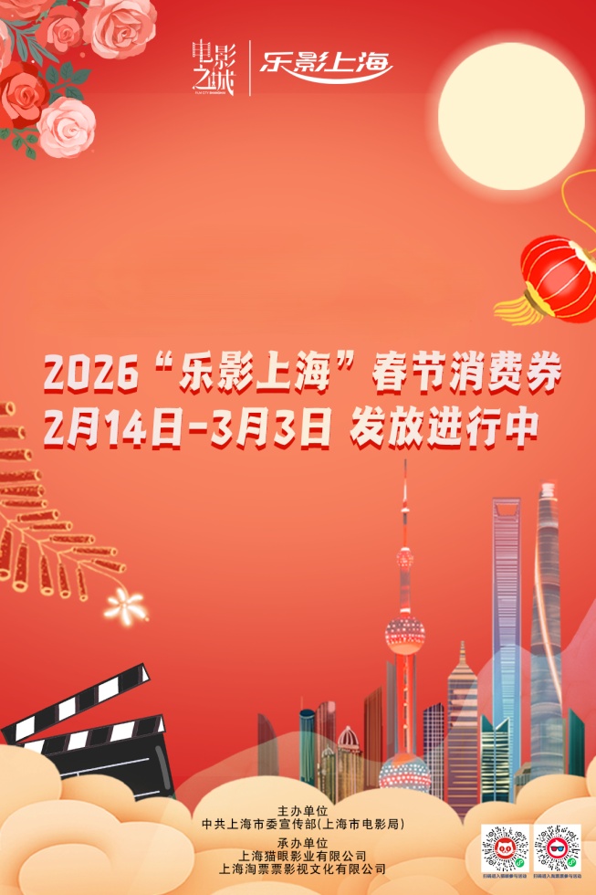 欢欢喜喜看电影,热热闹闹过大年。2026春节档《飞驰人生3》等多部大片即将上映。市委宣传部(市电影局)从2月14日起,联合猫眼、淘票票两大平台推出2026“乐影上海”春节消费券活动,每日上下午准点发放,领取方式简单快捷,最高可享6次共360元优惠,活动总金额达5000万元,诚邀全市人民一起乐惠看电影。