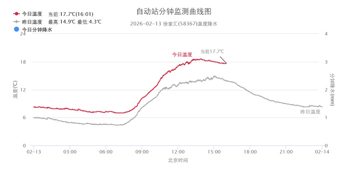 趁着冷空气休息,今天升温加速。早晨部分地区出现能见度小于500米的雾,随着阳光洒下,午后暖意迅速铺开,全市最高气温普遍升到了17~20℃之间,市区徐家汇站18.6℃,郊区中嘉定站最高达到19.8℃。夜里云系较多,局部地区有短时小雨上线。由于湿度较大,今天下半夜到明天早晨,沿江沿海地区仍可能有雾,出行还需注意交通安全。