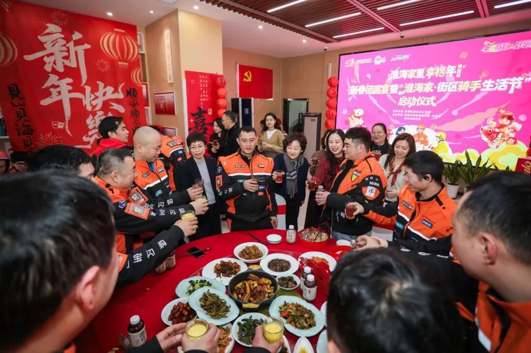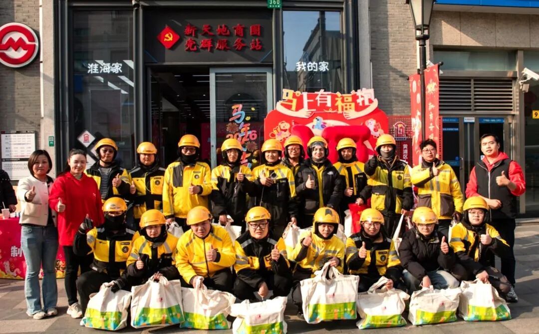 在浓浓的年味与暖意中,网格爱心力量一一登场,为骑手们送上沉甸甸的新年贺礼。淮海中路街道联合淘宝闪购总部,发布2026年“淮海家·街区骑手生活节”,未来新天地综合网格将每月举办骑手活动,从节日关怀、生活融入、职场发展、志愿服务等多个维度,推动骑手融入街区发展。
