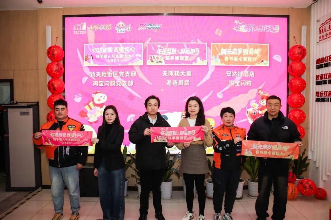 新天地街区党支部联手黄浦淘宝闪购城市骑士党支部,发布“你送甜蜜,我暖你心”骑手主题活动,活动将在2月14日为新天地商圈100名骑手们送上甜蜜祝福。未来端午、中秋、春节等传统节日的温暖祝福也将准时上线。安达仕酒店、无限极大厦、元气森林、域知竞体育、老爸厨房、上海直品公益基金会等众多爱心伙伴齐聚,一起为“淮海家·街区骑手生活节”加满能量。