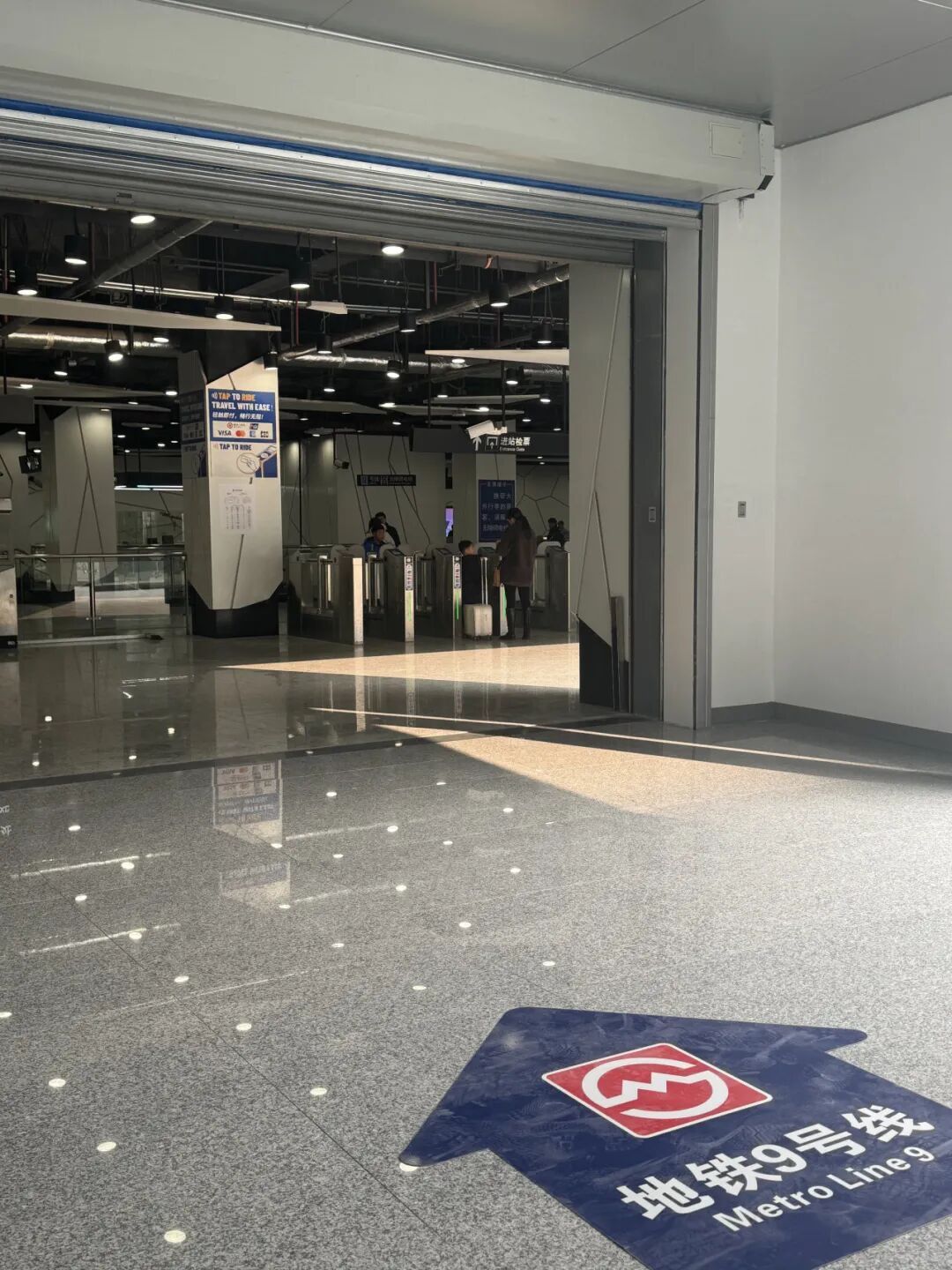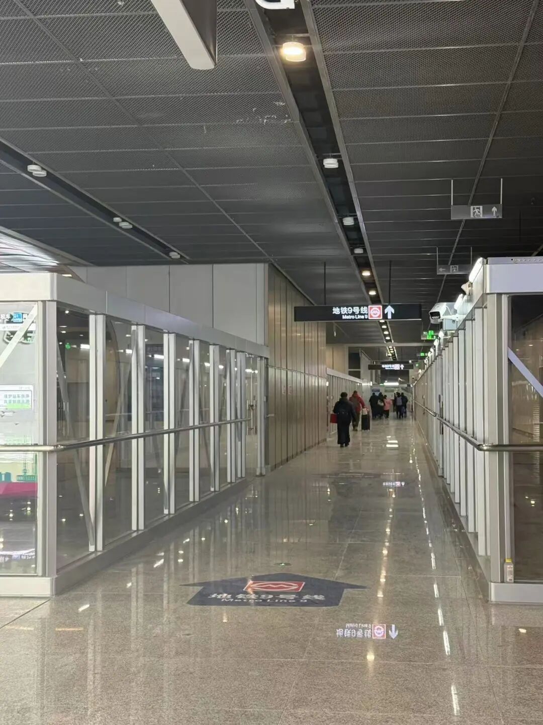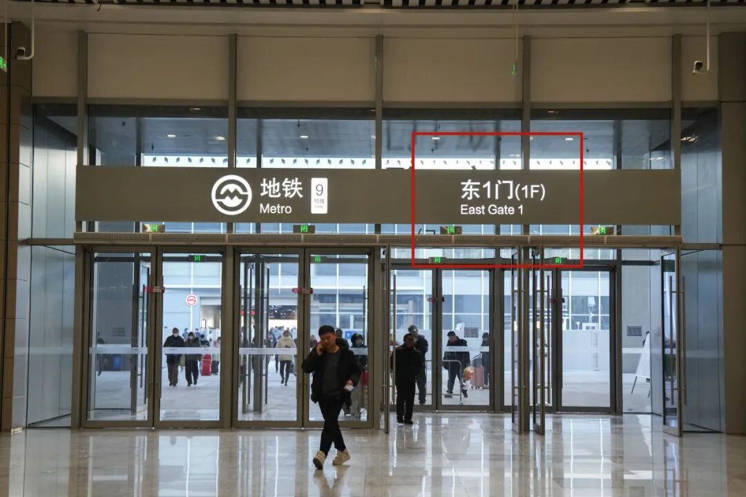 旅客从北区出站后,即可看到位于前上方的换乘标识,换乘地铁9号线的旅客往前走,进入服务中心。