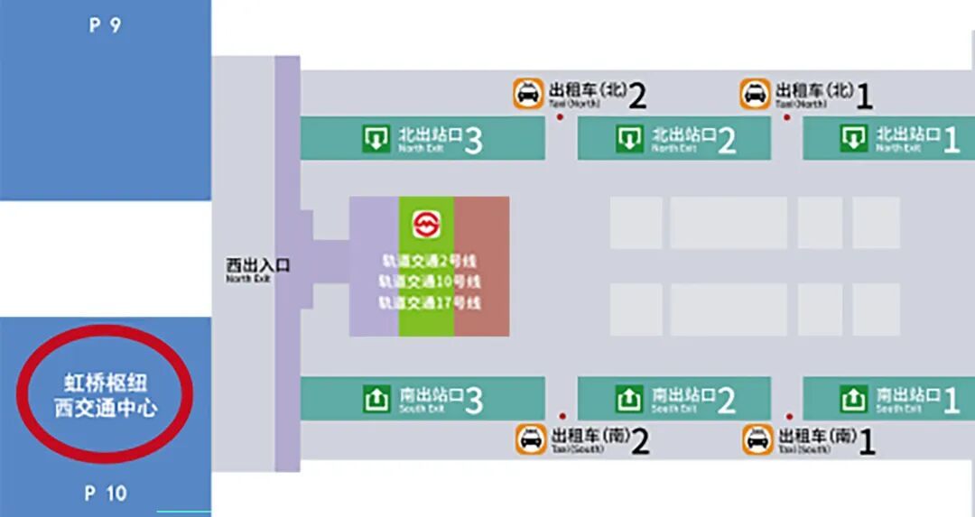 高铁出站后,需要乘坐定制公交的旅客,需前往虹桥枢纽西交通中心乘车哦!路线同上~