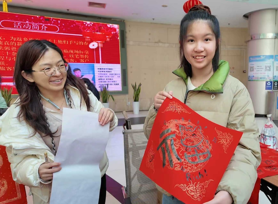 上午,记者在上海长途汽车客运总站看到,候车大厅内年味浓郁,拎着行李的旅客提到回家过年,脸上满是期待。与此同时,总站还特别推出写“福”送“福”活动,邀请书法家为旅客现场写“福”字,将新春祝福化作一幅幅墨宝,让归乡之路充满温情。