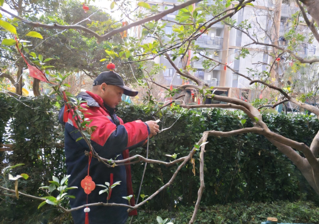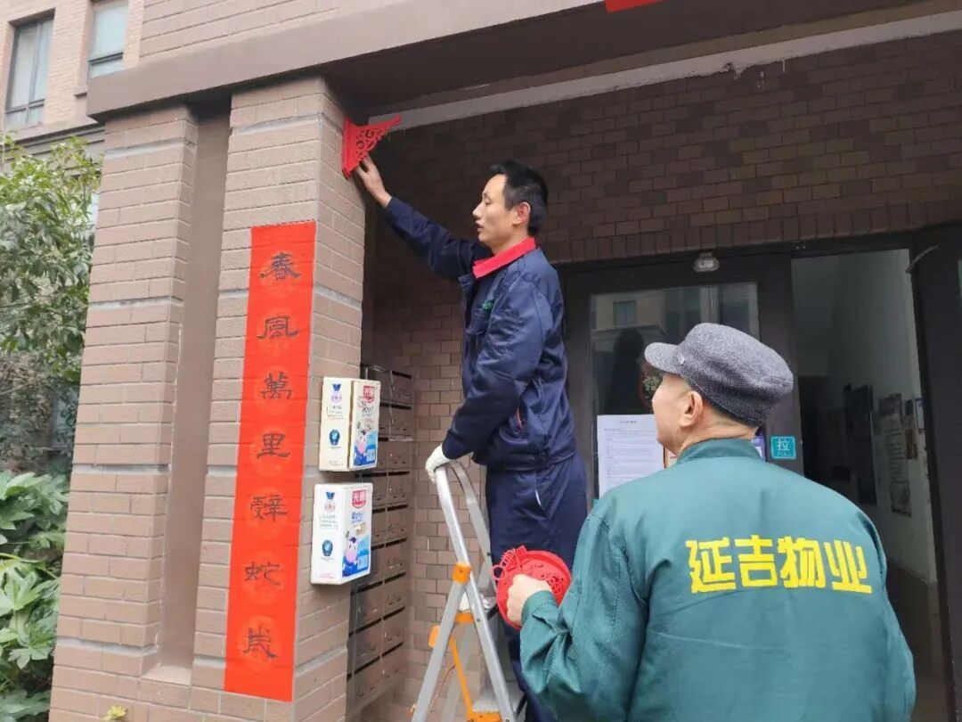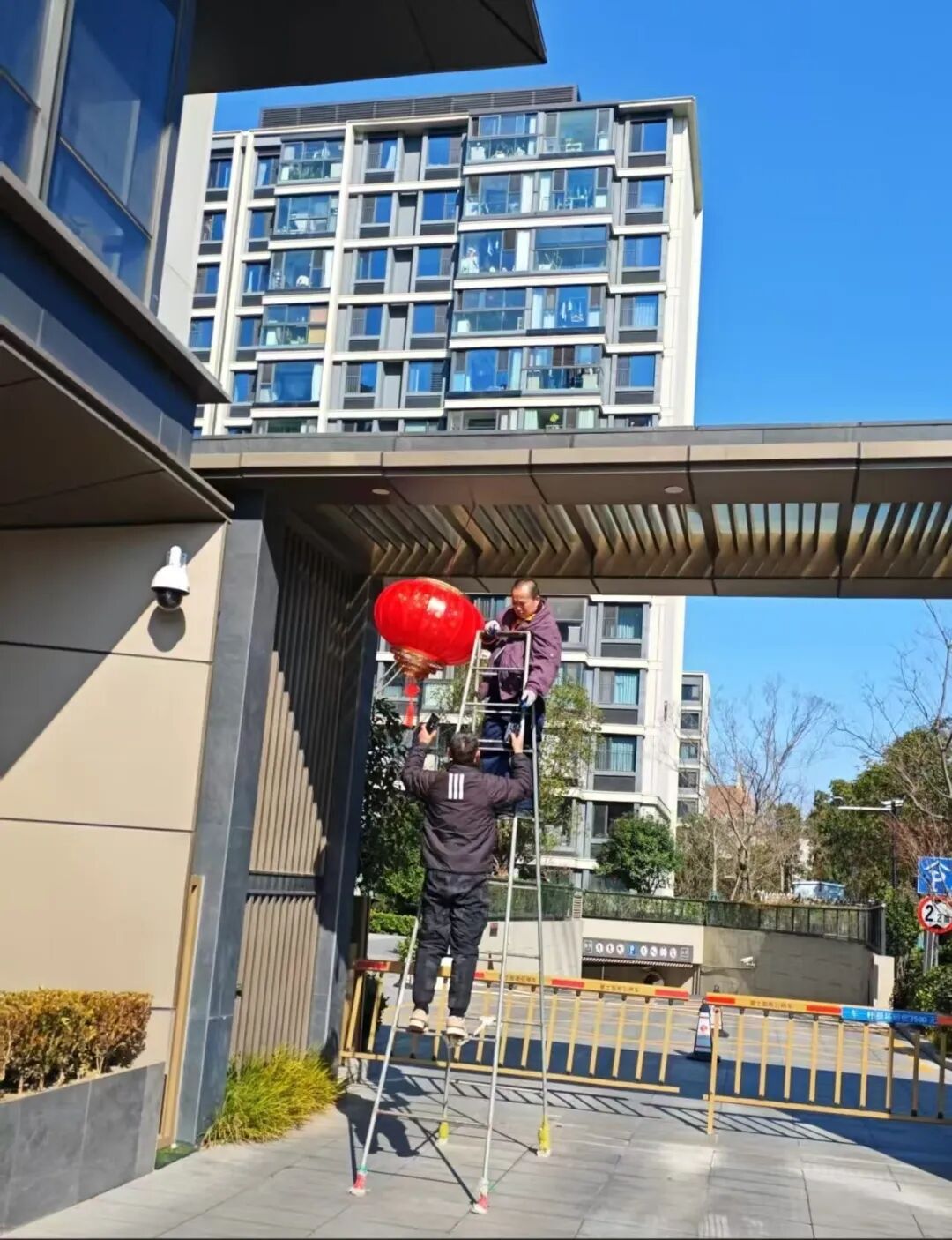 年味是最暖心的陪伴。青浦物业人化身年味营造师,把用心藏进每一处细节。春节前,穿梭在楼道大堂、花园广场,挂红灯笼、贴福字春联、布置节日装饰,让冬日的社区满目红火、年味浓浓;节日里,坚守保洁、绿化岗位,及时清理园区杂物、维护环境整洁,让居民在清爽雅致的氛围中欢度新春。从一盏灯笼的悬挂到一副春联的张贴,以点滴匠心,为青浦社区勾勒出红红火火的新春画卷。