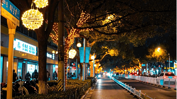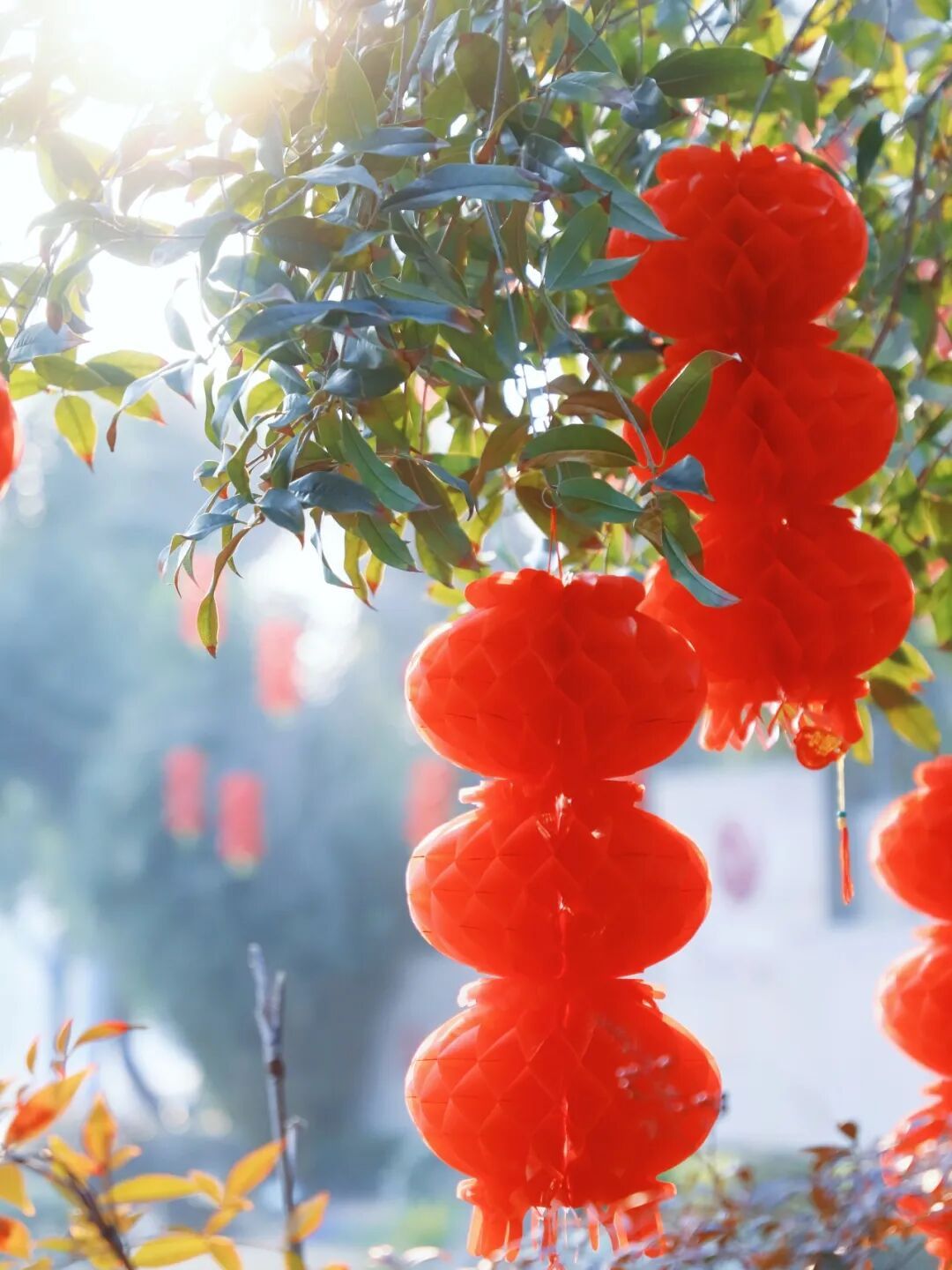 走在街道上,两侧红灯笼高高悬挂,树干披上彩色“新衣”,中国结随风轻摆,节日氛围在城市空间中悄然铺展。
