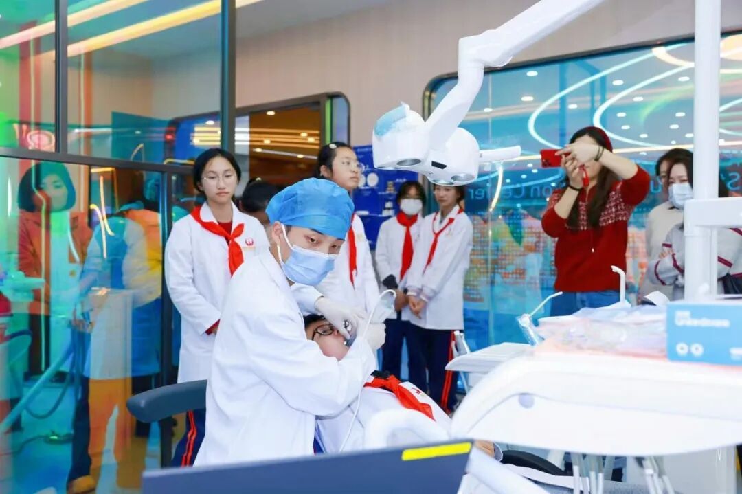 学校开展“小小牙医”亲子研学实践活动。孩子们在专业医师悉心指导下化身“小牙医”,亲身体验口腔护理实操,接受AI口扫与一对一口腔健康检查,系统学习科学护牙知识。智能设备、体感游戏、实景科普等趣味形式让孩子们在沉浸式实践中感受科技赋能与健康守护的深度融合。