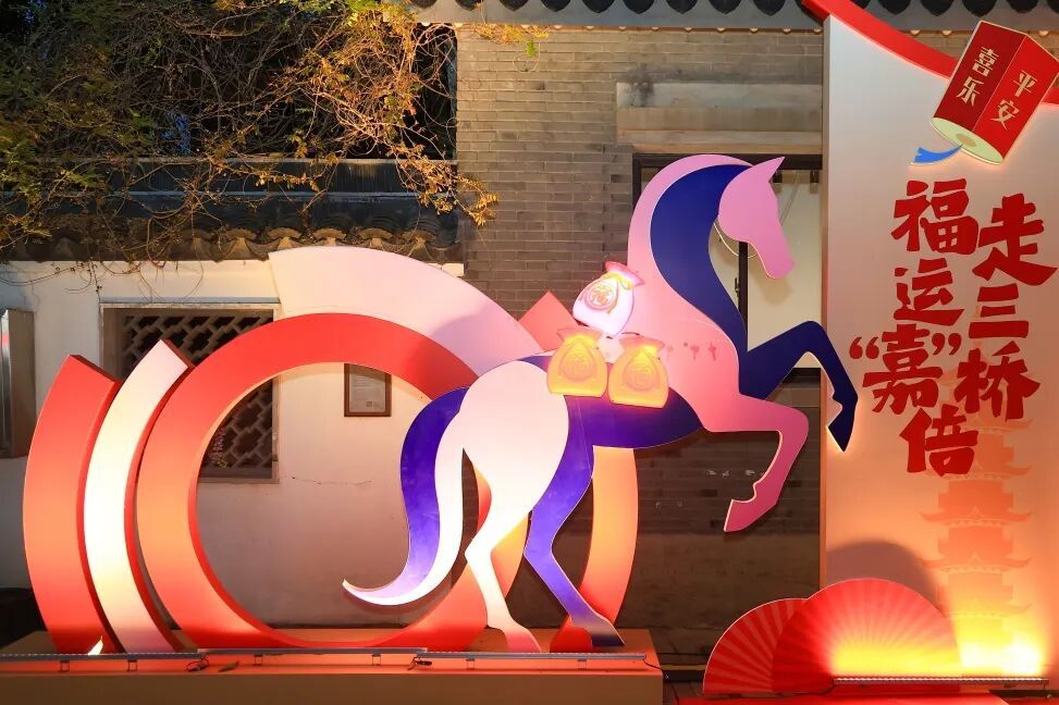 双塔下沉式广场(东侧),新春期间,设计布置了“骏马绘佳音”新春祝福墙,供市民游客拍照打卡。