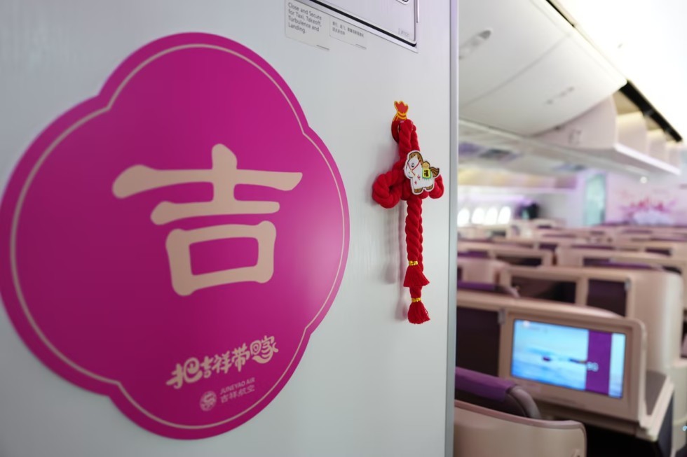 地面与空中场景联动,将“吉祥如意”的祝福贯穿飞行旅途。在HO1177上海飞往三亚的春节主题航班上,吉祥航空举办“万米高空过大年”特色活动。