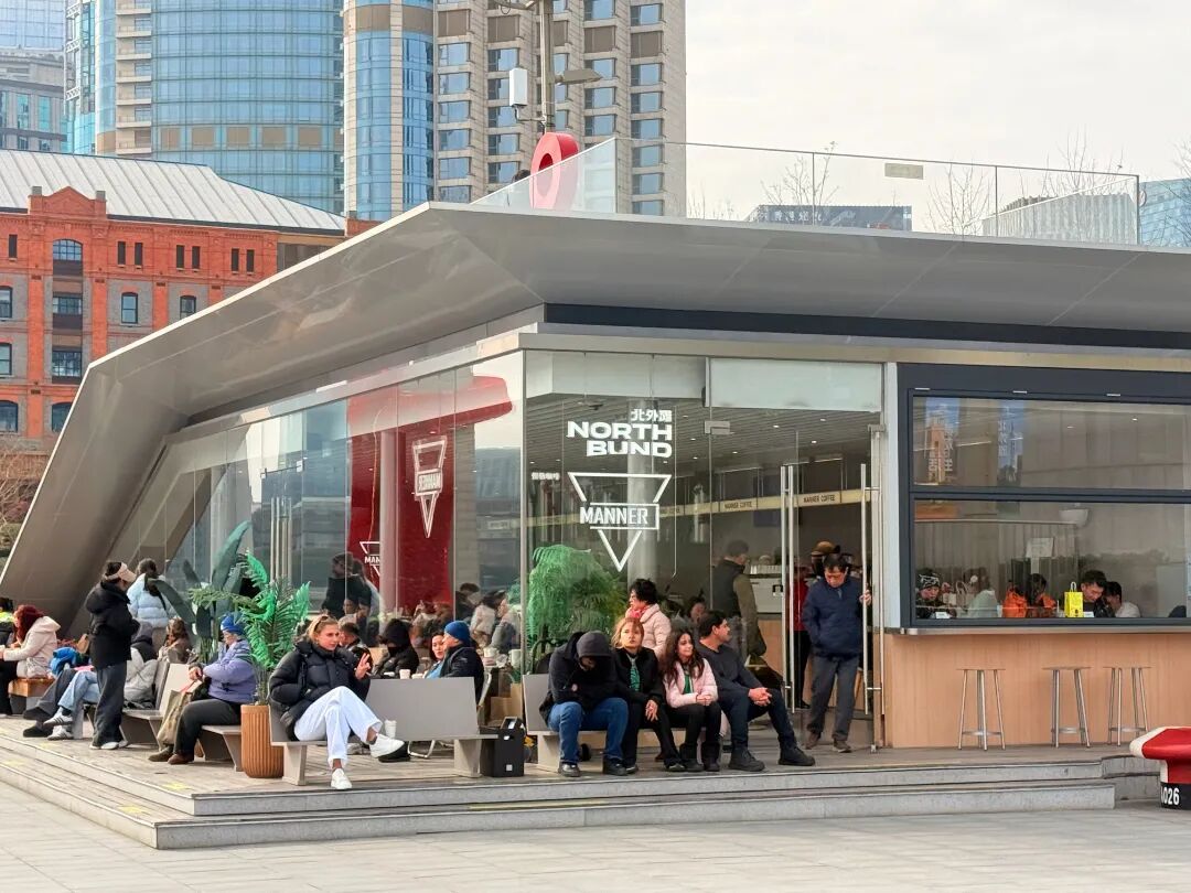 运动间隙,北外滩滨江咖啡业态成为休憩补给、氛围感打卡的最佳方式。沿江的Manner、M Stand等咖啡馆,依托一线江景与开阔户外空间,成为放松身心的“能量站”。记者在现场看到,不少市民滑完冰、结束探险后,会来到滨江咖啡外摆区小坐,在江风与咖香中拍照打卡、聊天休憩。