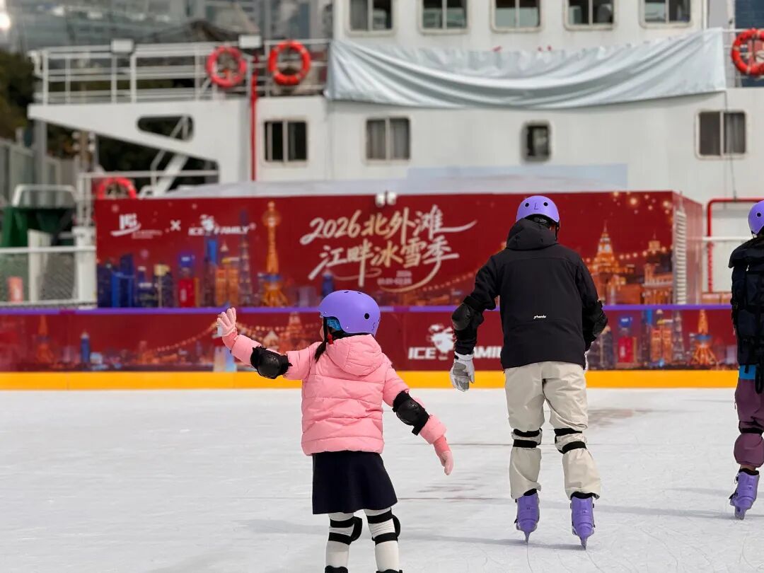 不少家长也将这里当作春节带娃游玩的首选。“北外滩这里好玩的地方很多!前面先带孩子玩完魔都矩阵,再让她们体验下江上冰场,滑完就去旁边的白玉兰广场吃饭,一天安排得满满当当!”市民周女士带着孙女们接连打卡北外滩两大运动空间,姐妹俩第一次滑冰便爱上了这片江景冰场,“一边滑冰一边看风景,一点都不觉得累,特别开心!”