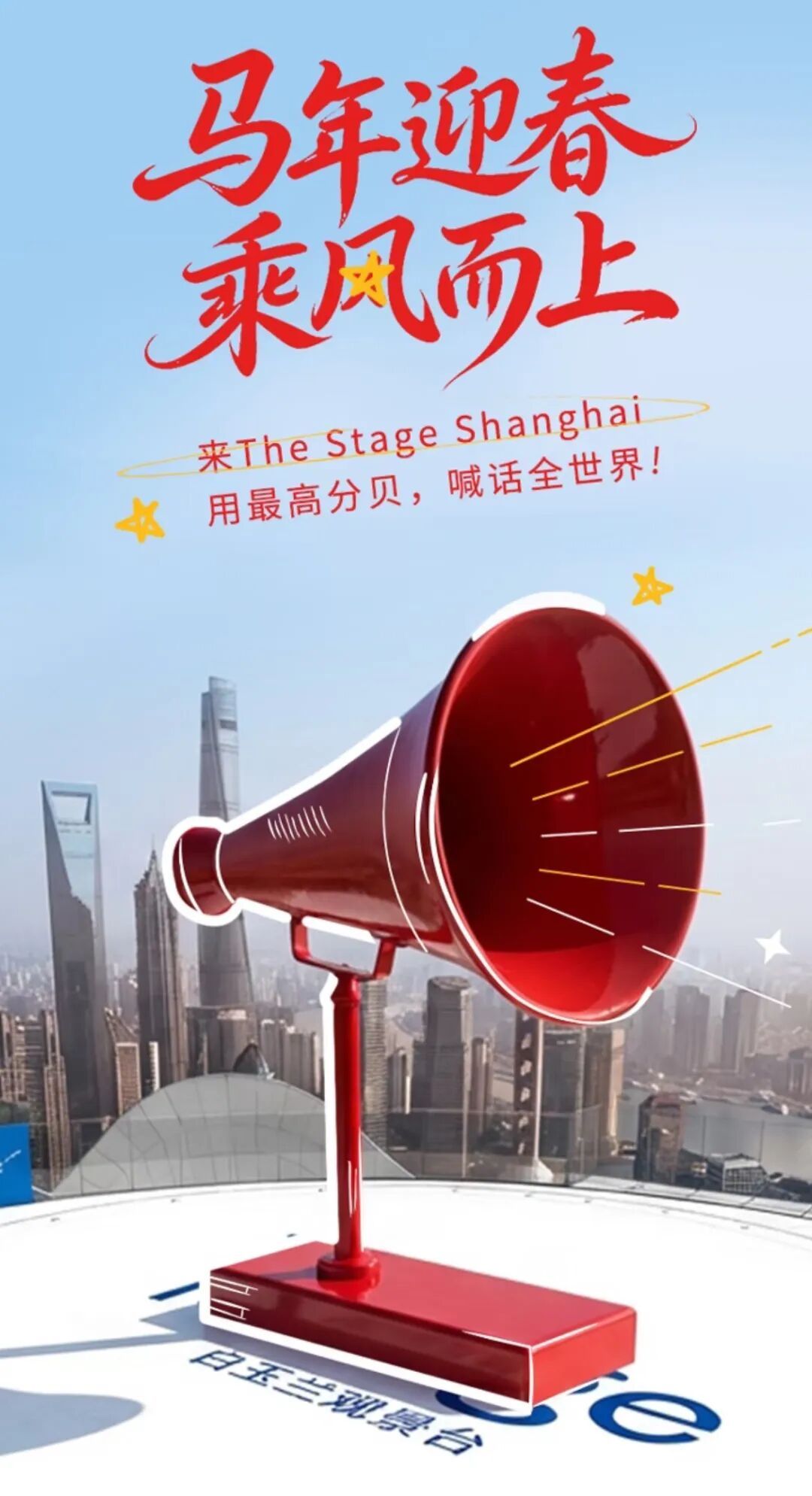 作为“乐购虹口” “乐游虹口”的重要地标,北外滩The Stage观景台也是虹口新春的热门打卡地之一,位于320米高空的观景台,提供360°无遮挡全景视野,尽情俯瞰浦江两岸风光。春节期间推出“登高许愿”主题活动,在观景台设置了红色传声筒,以“站得高,喊得响,许愿更灵”的创意,成为市民游客新春打卡、祈福迎新的热门选择。