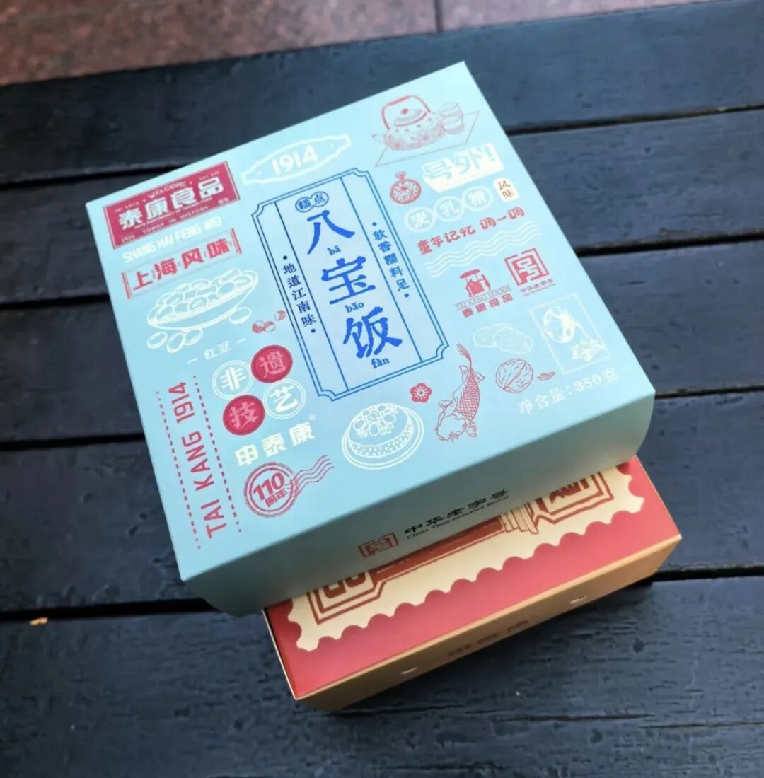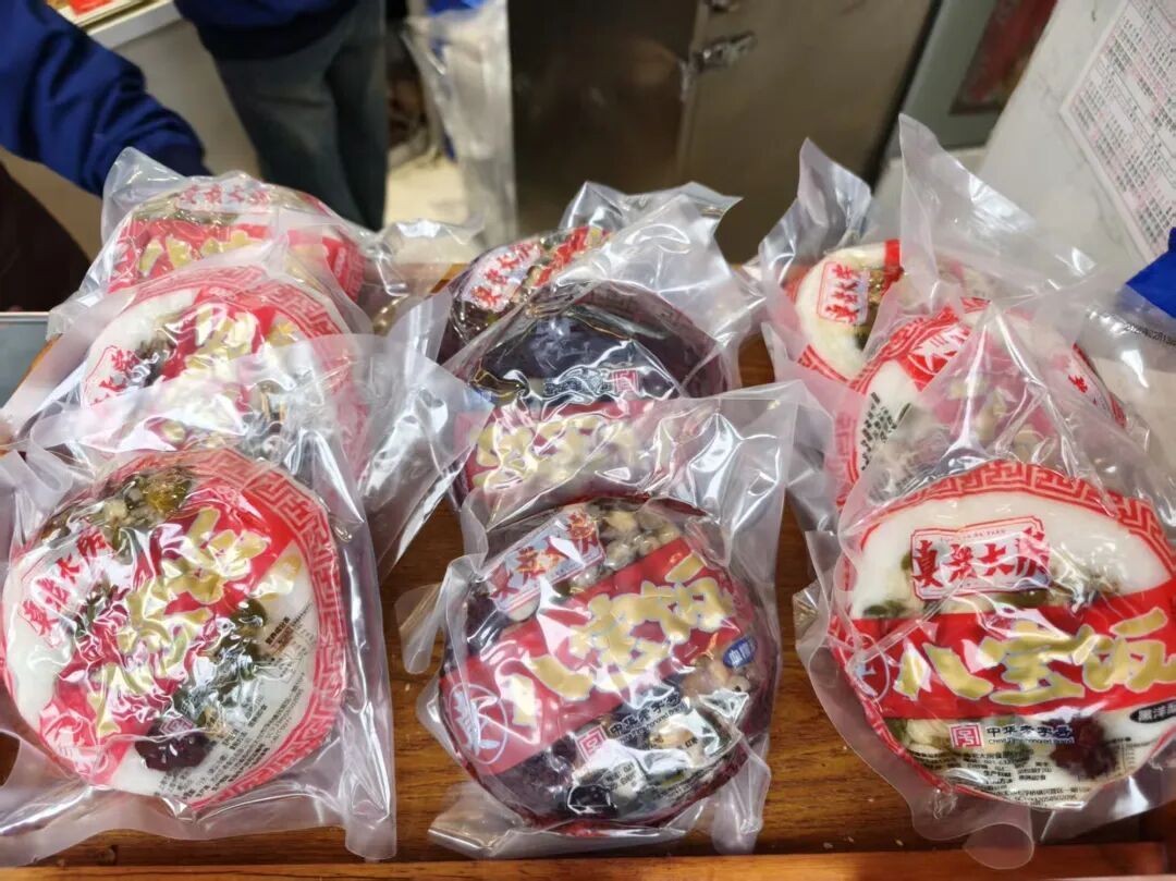不远处的八宝饭柜台同样火爆。今年新品麦乳精流心八宝饭一经上市便成爆款,传统糯米豆沙搭配泰康经典麦乳精流心,蒸熟切开奶香四溢,口感层次丰富。上市两天首批售罄,补货后再度排队,总销量已突破3000个,成为今年南京路年货圈的“流量担当”。