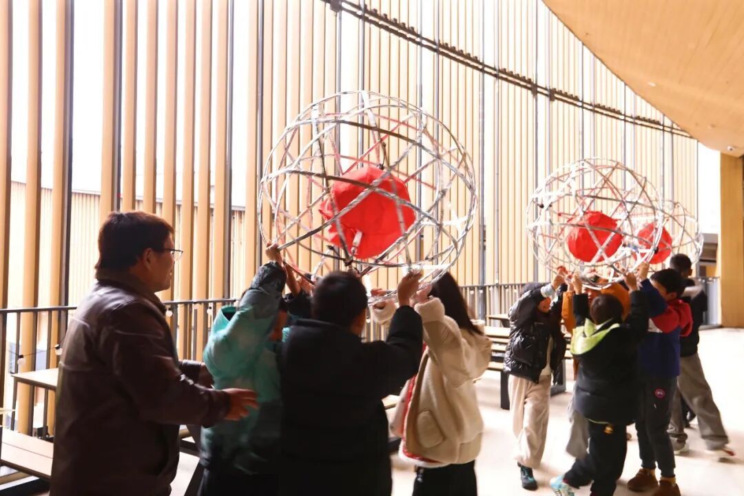 上午九时,窗外的冬日阳光透过玻璃洒进馆内,书架旁悬挂着红色春联,墨香犹存。在家长和指导老师的陪伴下,孩子们正在学习编织滚灯挂件。这是柘林镇“非遗过大年”系列活动之一,也是奉贤滚灯这门古老技艺与当代儿童的一次温柔相遇。 “我今天做了一个滚灯,是第一次做,我感觉很开心。”二年级学生宋涌鑫举起手中的作品,结构交错间,隐约可见他稚拙却用心的痕迹。另一名学生黄恩点告诉记者,幼儿园时曾在节庆活动中见过滚灯舞动,上小学后便再未接触。“今天又看到了,觉得挺亲切的。”他说。 家长们或俯身协助,或静静观望。一位母亲笑着说,带孩子来就是为了让他开心,“做个滚灯,他学得也很投入”。另一位家长则道出了更深的情感牵连——她幼年就读在胡桥,那是奉贤滚灯流传最广的地区之一。“我们是最早一批学滚灯的小孩子,体育老师手把手教的。所以我也想让孩子来体验一下,算是文化在家庭里的传承吧。”她说。 活动进行到一半,国家级非物质文化遗产项目“奉贤滚灯”上海市级代表性传承人王正荣提着四只中滚灯走到图书馆外空地上。灯身红绸缠绕,竹骨轻盈,直径80厘米、重仅六七斤,孩子们争相伸手去托。王正荣俯身示范,教孩子们让滚灯在肩头、臂弯间流转。顷刻间,滚灯飞旋,笑声满屋。 “滚灯发明于元代,距今将近800年。”王正荣说。据史料记载,当年太平军进驻奉贤时,当地百姓便是以跳滚灯的形式欢迎。这门集舞蹈、杂技、体育于一体的民间艺术,流传于江南桥乡奉贤西部地区,2008年入选“第一批国家级非物质文化遗产扩展项目名录”及第二批国家级非物质文化遗产名录,被誉为“中华一绝”。 然而,这门“国宝”技艺并非一成不变。王正荣回忆,早期的大滚灯直径1.5米、重达六十余斤,虽舞起来气势彪悍,却只适合成年男性表演。“女演员耍不动,阿姨们更不能,小朋友就更别提了。”为了让更多人能够参与,团队将大滚灯缩小至1.2米,又研发出80厘米的中滚灯,再到如今直径28至32厘米的小滚灯。“我们最想要,小到幼儿的娃娃,上到六七十岁的老爷爷老奶奶,都能够参加。” “我们定了一个目标口号,要‘五进’:进社区、进校园、进军营、进企业、进商圈。”王正荣说。如今,柘林镇已实现“滚灯项目全覆盖,一村一品创特色”,各村居自编自导自演,滚灯从少数人的绝技,变成了百姓舞台上的常客。表演动作不断推陈出新,可看性与层次感远胜从前。 “我从挖掘出滚灯到现在,心里深深感觉,就好像一个小孩一样,现在把他抱大了。他健康茁壮地成长,而且发展得这么好,我们就更要与时俱进。”王正荣说,声音里带着自豪的喜悦。“所以我们就创新了新的动作,现在表演的确可看性比以前丰富了不少,层次上也很鲜明。” 柘林镇社区党群服务中心工作人员张雯静介绍,今年春节期间,镇上推出了非遗大集、非遗过大年、滚灯导赏及手工体验等一系列活动。“我们希望市民朋友和小朋友都能在亲手参与中,感受到非遗过大年的欢快氛围。” 窗外年味渐浓,窗内竹影翩跹。一盏盏小滚灯在孩子们手中初具雏形,灯未亮,心已暖。从胡桥村的老槐树下,到柘林镇的少儿图书馆;从六十余斤的沉重灯身,到六七斤的轻巧滚旋——七百余年的滚灯,正以从未有过的轻盈姿态,走进寻常百姓家,也走进又一个马年新春。