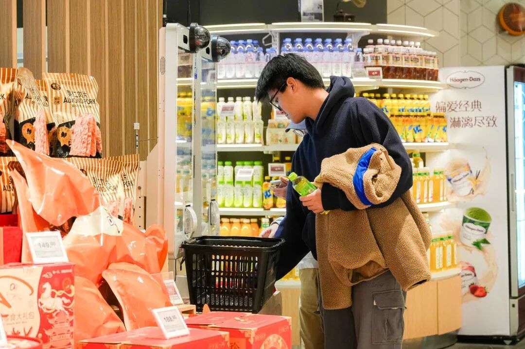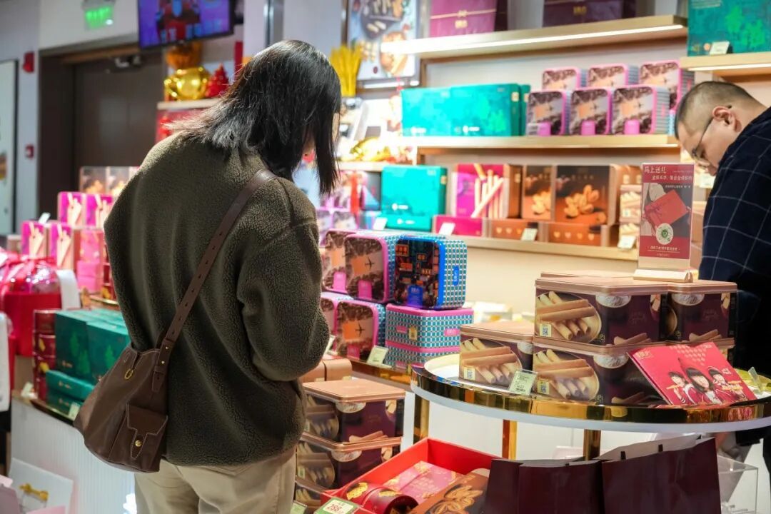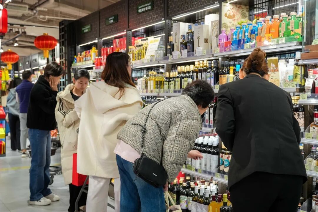年夜饭的灵魂不能少!在国金中心,人们也囤上不少年货。各类调料配齐,煎炒烹炸炖样样出味,解锁家的味道;火锅丸子囤满冰箱,亲友小聚煮一锅,热气腾腾暖到心尖;再备上几瓶好酒,举杯共饮,畅谈过往,解锁团圆仪式感。
