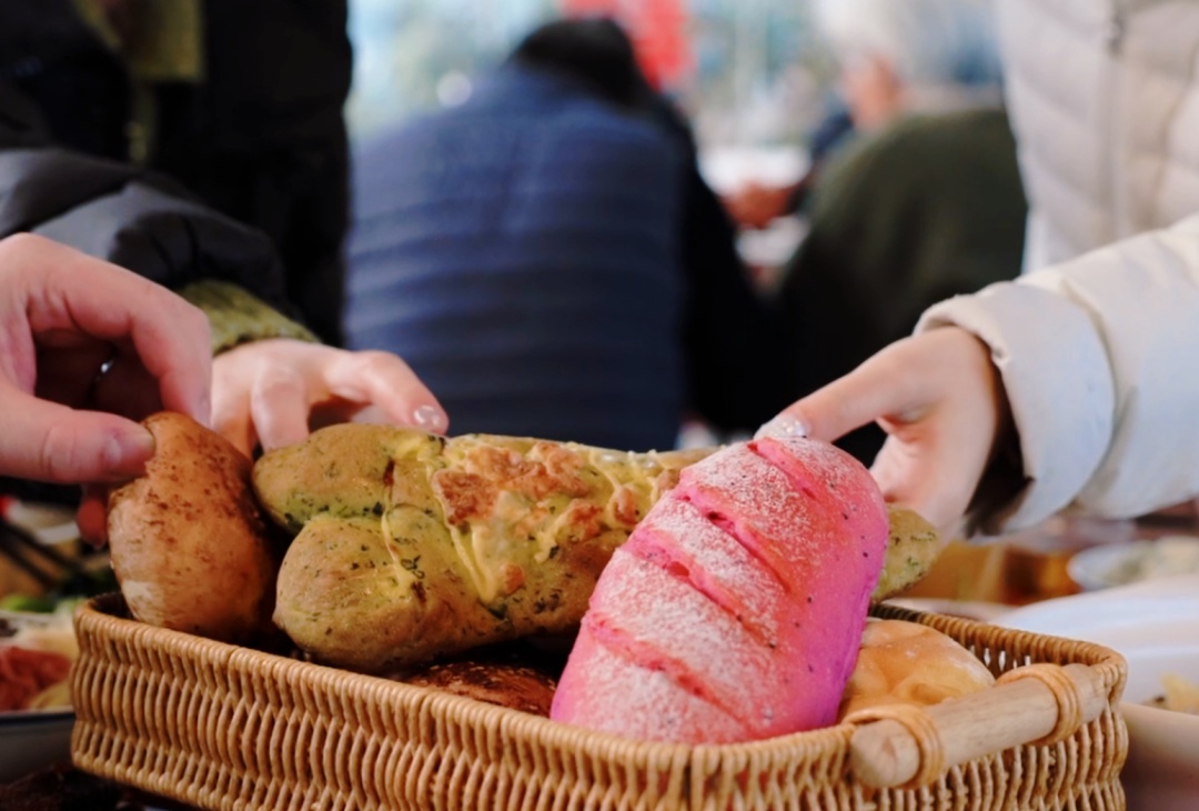 桌上这盘面包,是下午刚出窑的。东新市村的麦粉揉进富硒藜麦,外皮还是脆的,撕开的瞬间,麦香裹着暖意散开来。村里阿婆清早送来的土鸡很好;青菜,霜打过,甜。