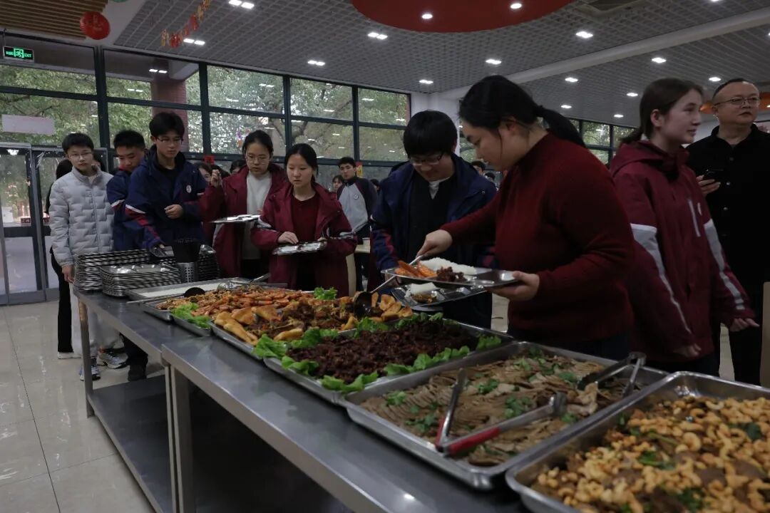 除夕,奉贤中学食堂灯火通明。新疆班的孩子们围坐一起,大盘鸡、手抓饭、馕饼——是食堂师傅照着家乡菜谱一遍遍试出来的。