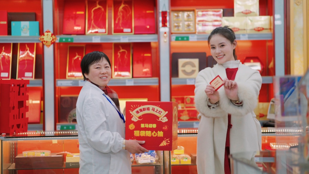 金饰承福,天宝龙凤将古法匠心与传家情怀相融,黄金立减、福袋赠礼之外,更联动照相馆定格家庭温情,让每一件金饰都承载代代相传的美好。徐重道以“策马迎春 健康同行”为理念,野山参特惠、养生茶饮换购,福袋香囊赠福,将中医养生与新春祈福完美契合。