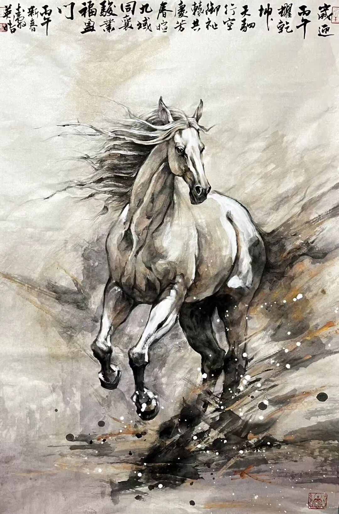本次展览面向协会全体会员征集以“马”为主题的书画作品,共征得佳作80余幅。作品形式丰富多元,国画的写意传神、油画的色彩浓郁、色粉的细腻雅致、书法的笔走龙蛇、篆刻的方寸乾坤,尽数呈现于一方展卷之上。画卷之中,或绘奔马驰骋、蹄踏长风,或书骏马如龙、气势轩昂,每一幅作品皆凝聚着艺术家的匠心巧思,更寄托着大家对马年大吉、诸事顺遂的美好期盼。