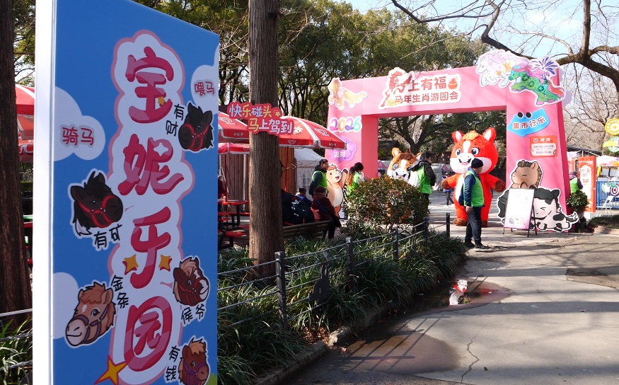丙午马年新春伊始,上海动物园“马上有福——马年生肖游园会”在宝妮乐园正式亮相,市集好物、萌马互动、非遗手作、趣味打卡等一站式活动为市民游客带来年味十足的新春体验。