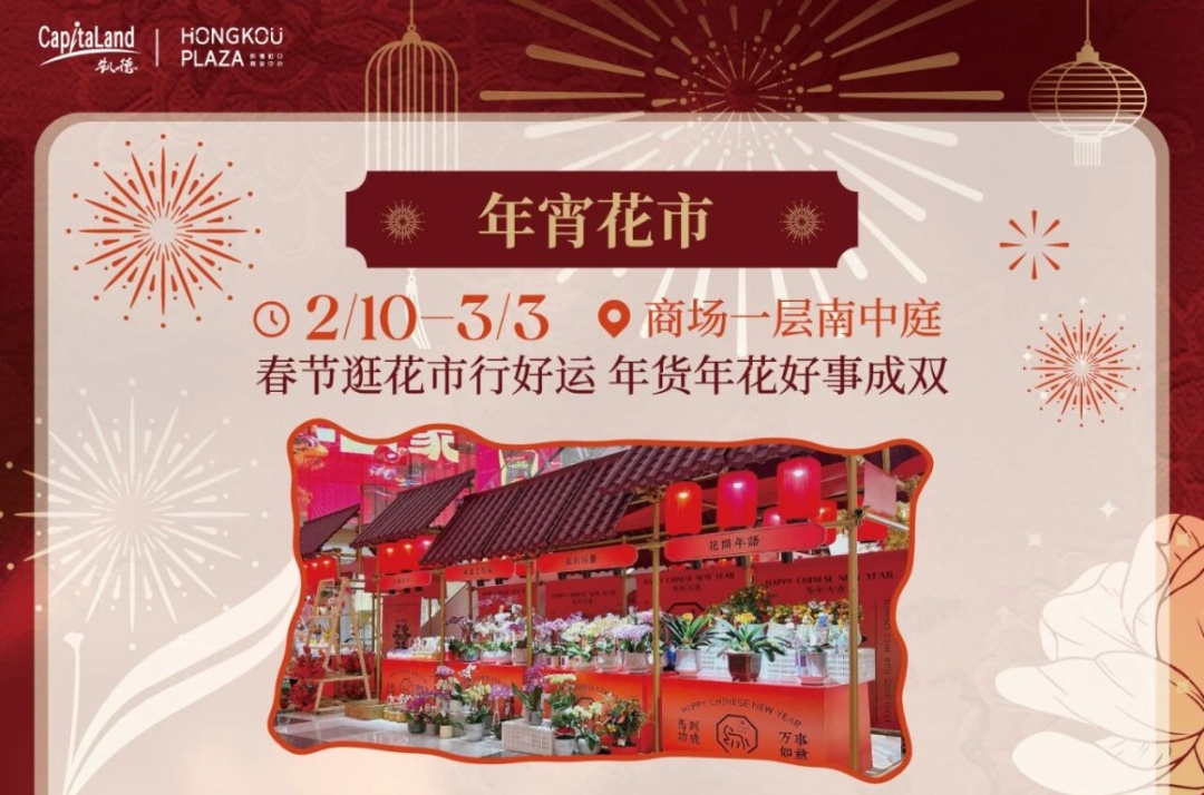 春节怎能少了逛花市的传统? 凯德虹口商业中心年宵花市盛大开启 年货、年花琳琅满目 让你的新年更加喜庆吉祥! 快来挑选心仪的年花 把好运带回家吧!