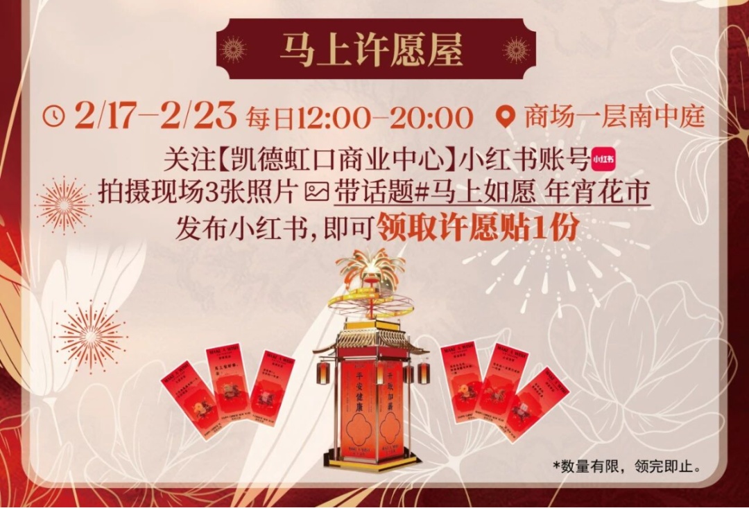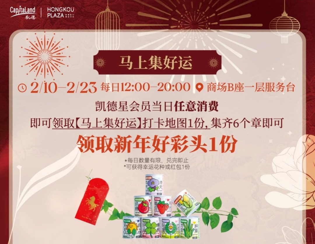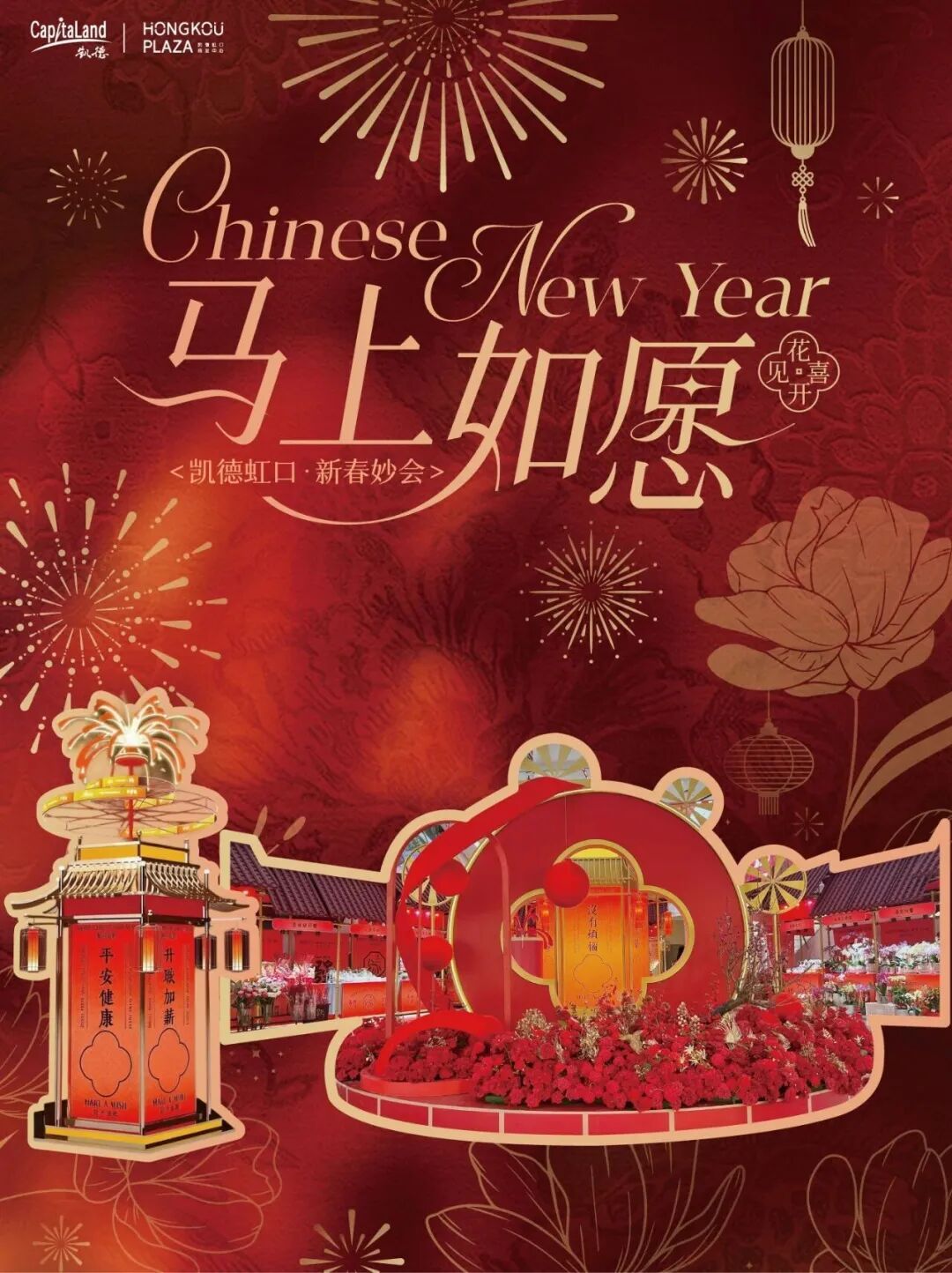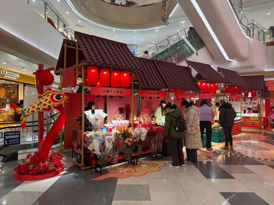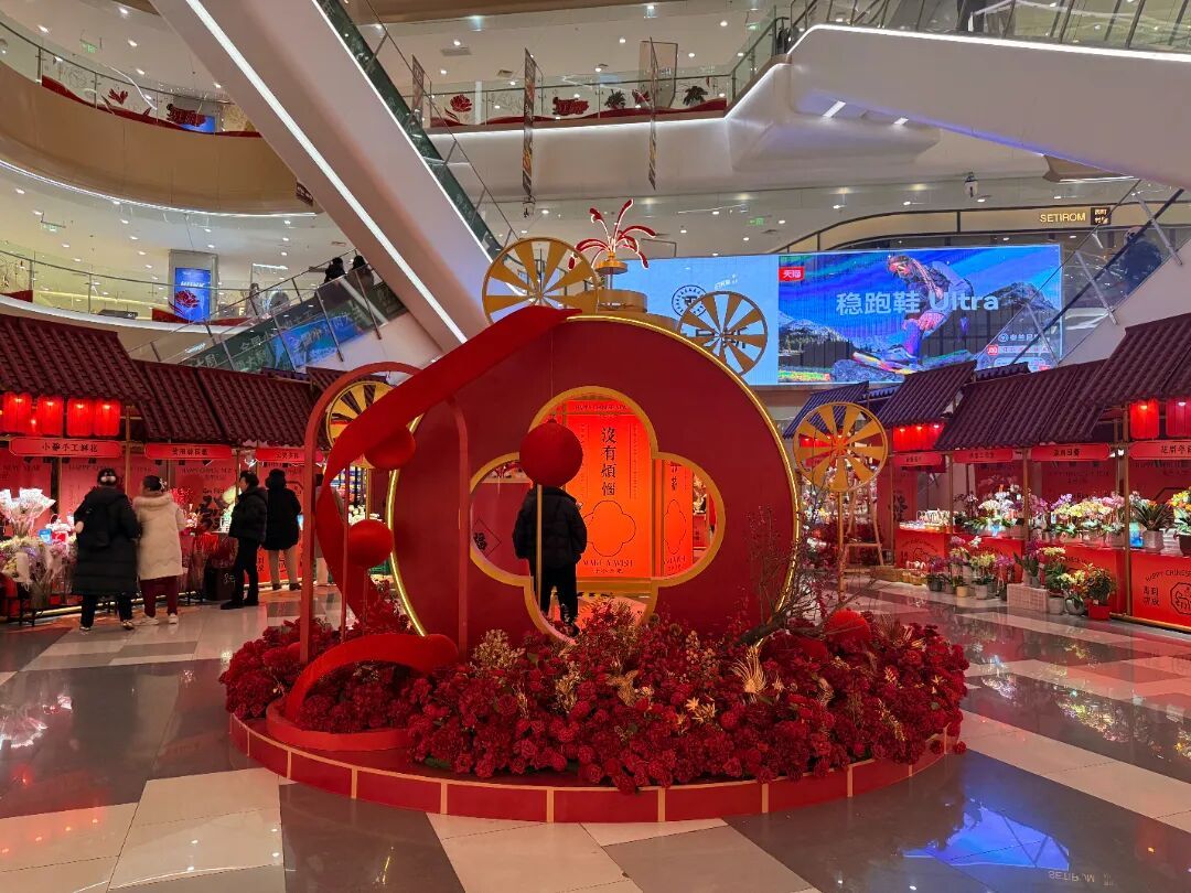 红灯笼串起暖意 鎏金装点门楣 马年新春的凯德虹口商业中心 传统年味与全龄欢乐 体现在每一处角落 新春主题的布置年味满满 红色主调大气喜庆 中庭回廊灯笼高挂、年宵花盛放 暖光与花香交织 往来行人驻足留影、笑语盈盈 汇成动人的新春序曲 马上如愿年宵花市 年味儿十足迎新春