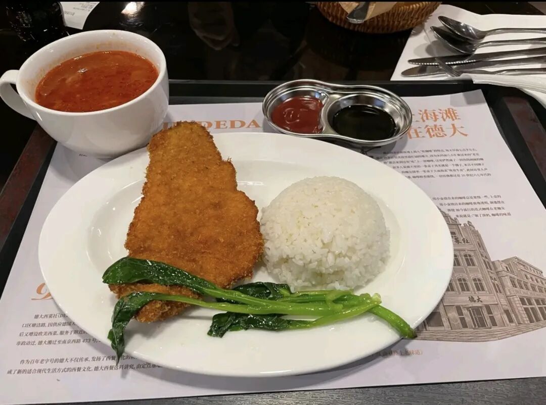 丁柏洪介绍,德大山西路店主打游客简餐,咖喱鸡肉饭、红烩牛肉饭、炸猪排饭等产品快速出餐、饱腹便捷,人均消费仅30—50元,精准匹配游客快速用餐需求。虽然形式简化,但经典老产品严格遵循老配方,炸猪排、罗宋汤等招牌菜,味道与80年代完全一致。