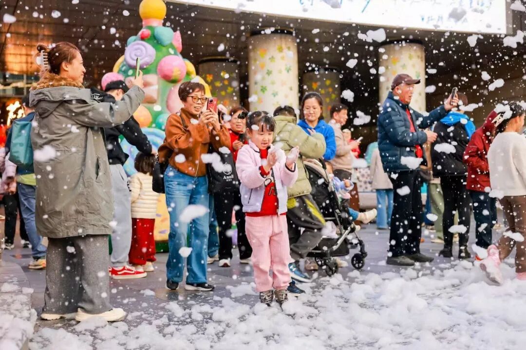 “随手一拍就是大片,完全不用滤镜!”正在为孩子拍照的市民陈女士赞叹,“还邂逅了泡泡幻境、怪车巡游、浪漫飘雪活动,太梦幻了,我们一家会再来打卡的。”