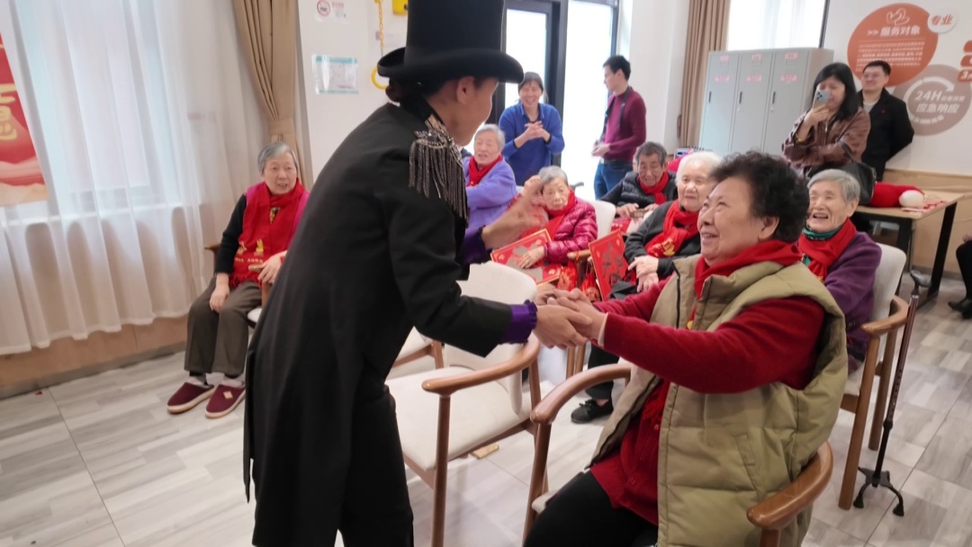 现场,淮海中路街道长者照护之家的10多名老人中年龄大多在80多岁,最长的已经90多岁。越剧名家韩婷婷特别带来了她的新作《孔“鹊”新吟》,是基于《孔雀东南飞》与《鹊桥仙》的创新改编,把爱的暖意融入到这演出场景中。戎阿婆今天正好是80岁,看到这么多人来看望大家,很是激动。“以前到敬老院来我是有顾虑的,怕别人说子女不孝,而且怕养老院服务人员不好。入住这些时间来,我已经不想离开了,这就像在家里一样,各方面都好。”