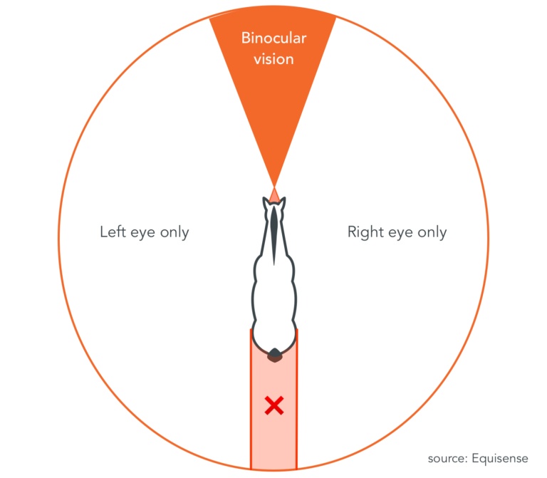 不过马的正后方、口鼻前方和下方(双眼视野中被自己面部遮挡的部分)的确有一部分视野盲区,所以有时需要低头、抬头才能看清面前之物。它们也偶尔会被脚下的影子、水坑等吓一跳。