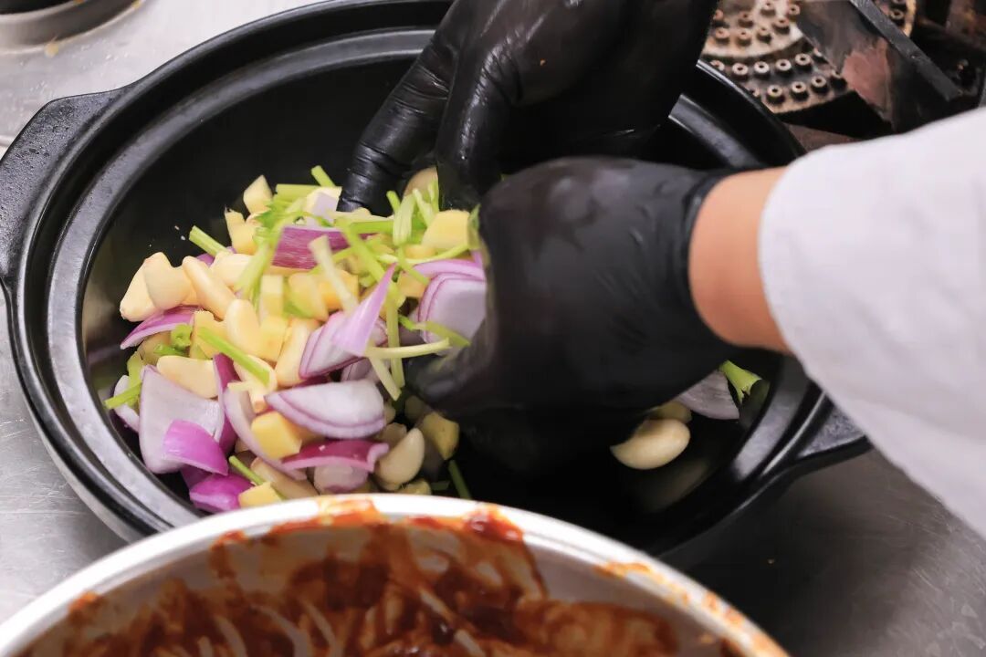 砂锅底部铺上