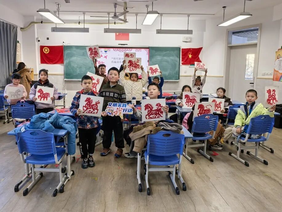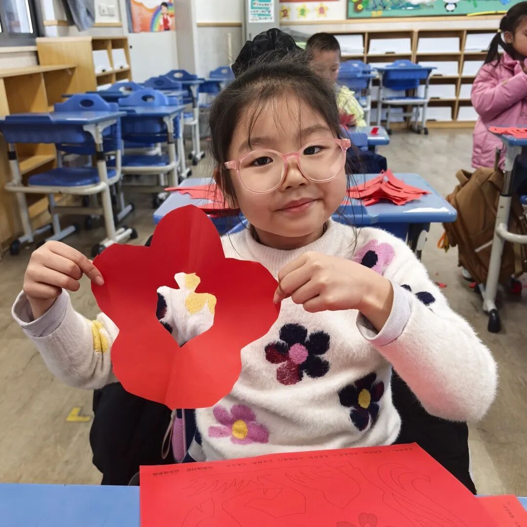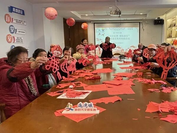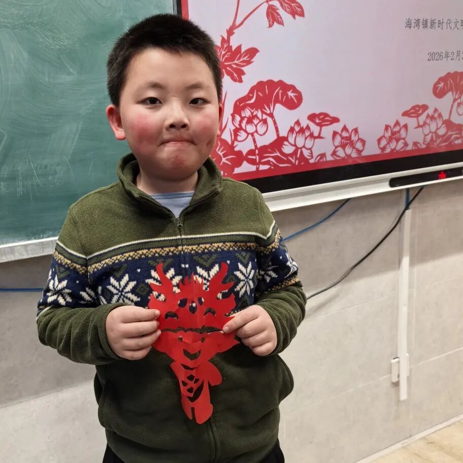窗花映喜,剪纸传情。非遗剪纸体验活动走进海湾镇新时代文明实践分中心活动室与寒托班课堂,让社区居民与孩子们同享非遗乐趣。活动中,大学生志愿者悉心讲解“先内后外、先细后粗”的剪纸技巧,指导大家拿捏流畅线条、雕琢圆润转角。红纸簌簌翻飞,小马、福字、花鸟、灯笼等灵动窗花于指尖次第成型。大家举着亲手剪的作品雀跃展示,脸上满是创作的喜悦与自豪,非遗魅力在欢声笑语中静静传递。