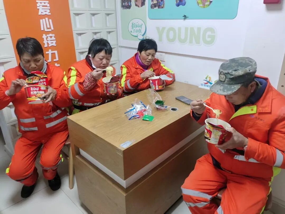 近日,海湾镇“新春送温暖”服务点于蓝湾户外职工爱心接力站暖心开放,为留沪过年的外卖员、快递员、保洁员等新就业群体,免费送上方便面、面包、热茶等暖冬物资。此次行动持续深化暖“新”服务实效,着力打造新就业群体随处可歇脚、随时能补给的新春暖心港湾。“天冷时,一杯热茶、一口热食,暖身更暖心,让大家伙儿干活更有劲!”蓝湾户外职工爱心接力站负责人黄阿姨笑着说道。