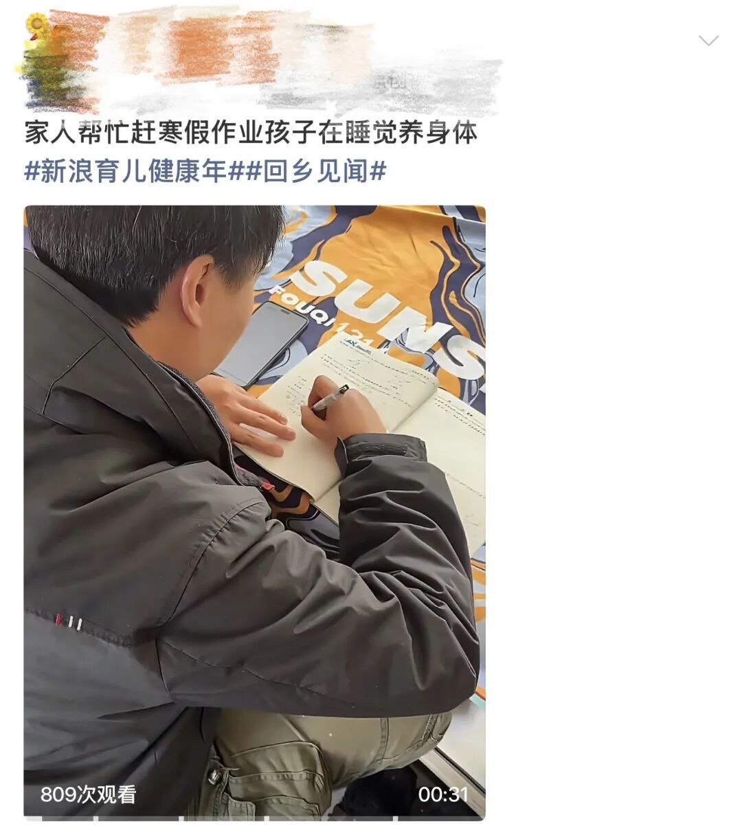 还有的网友号召全家上阵替娃写作业↓